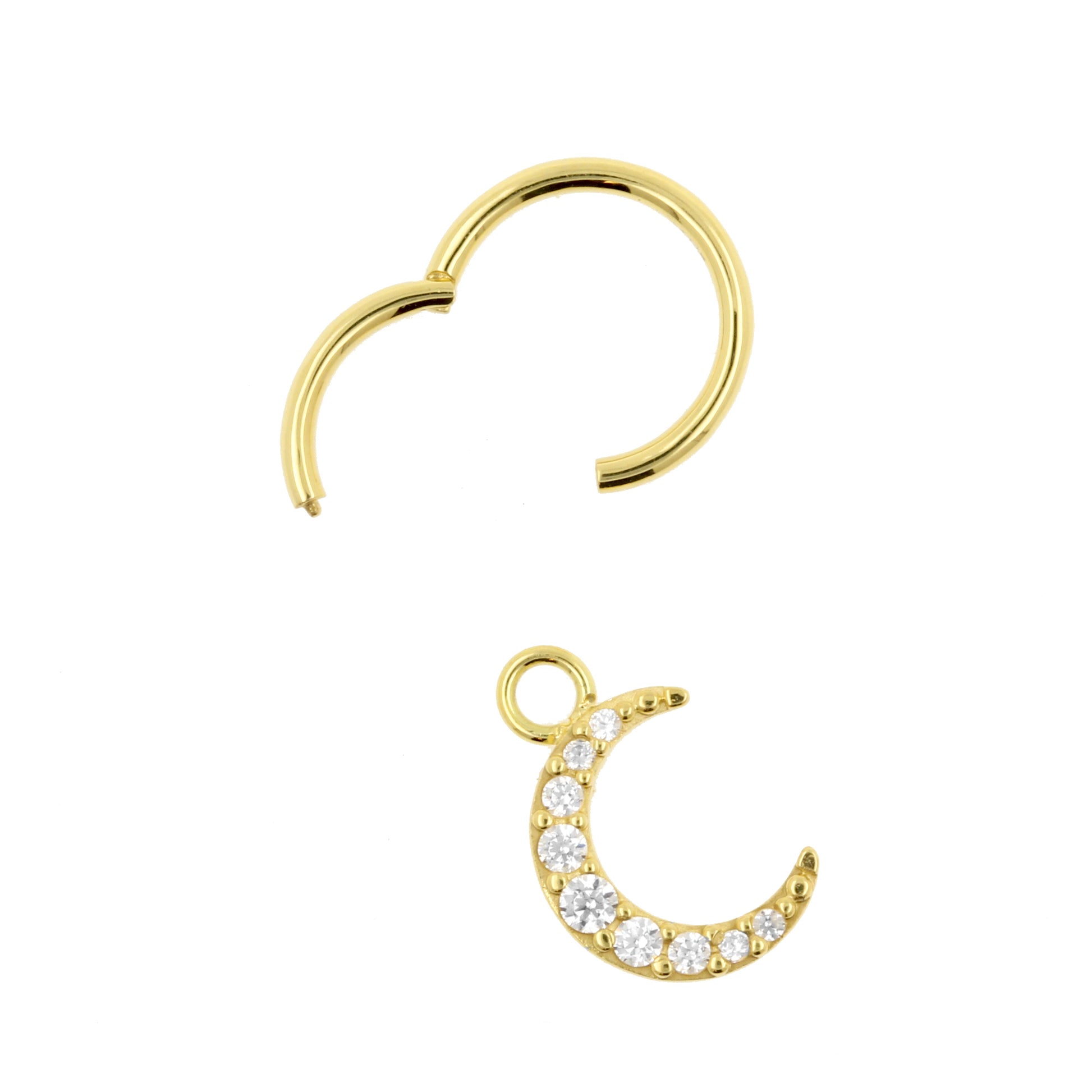 18 Karaats Gouden Click Ring Bedel - Zirkonia Moon Clear