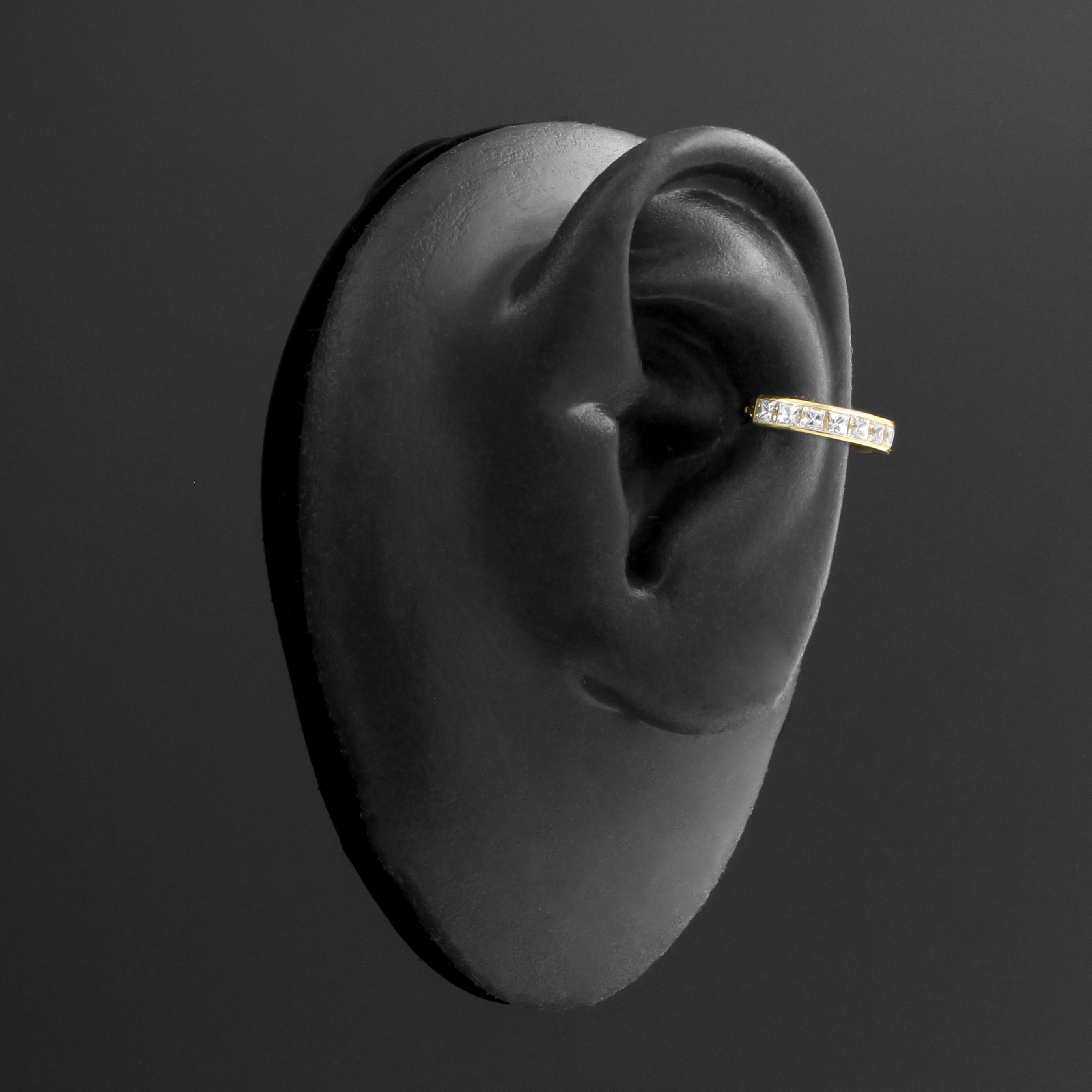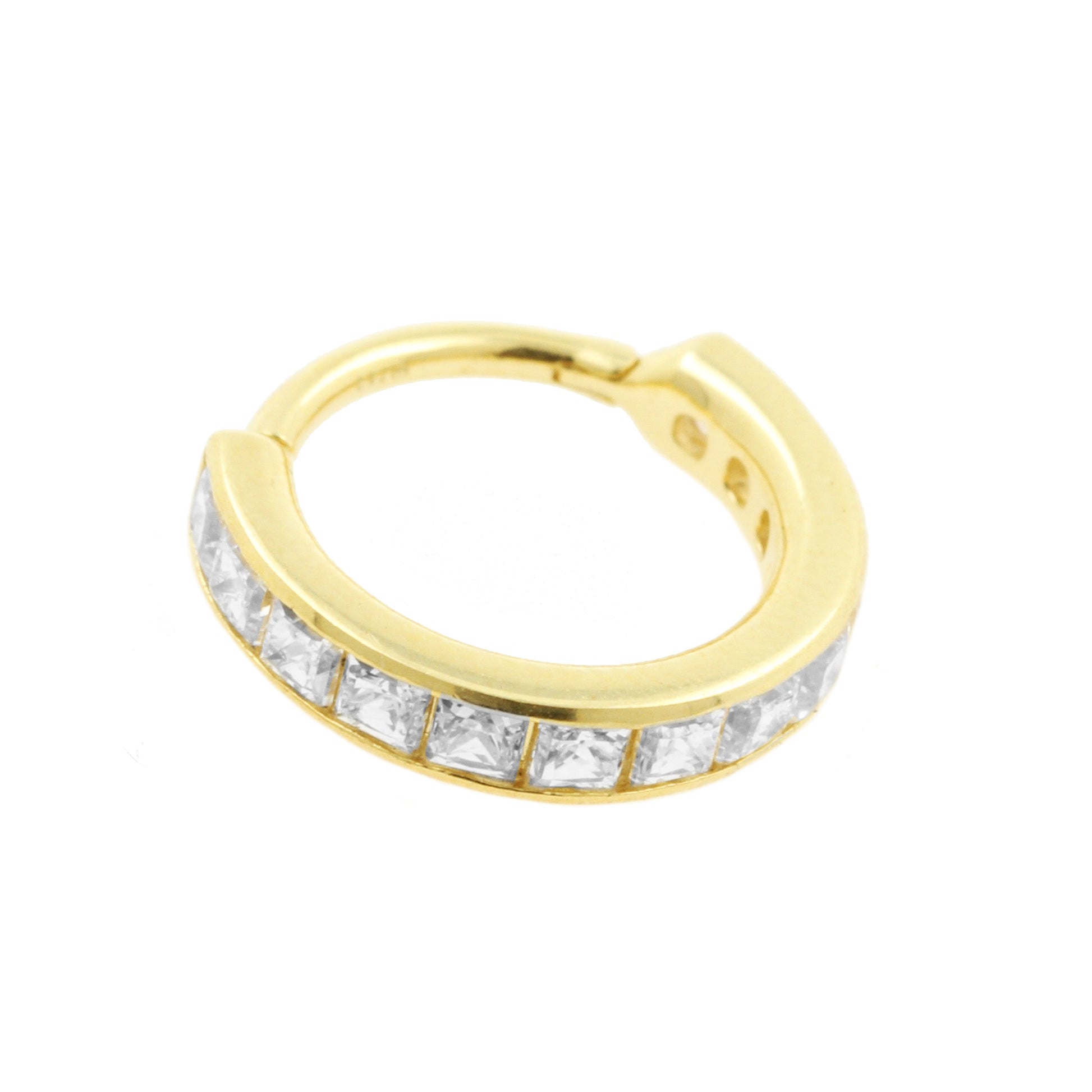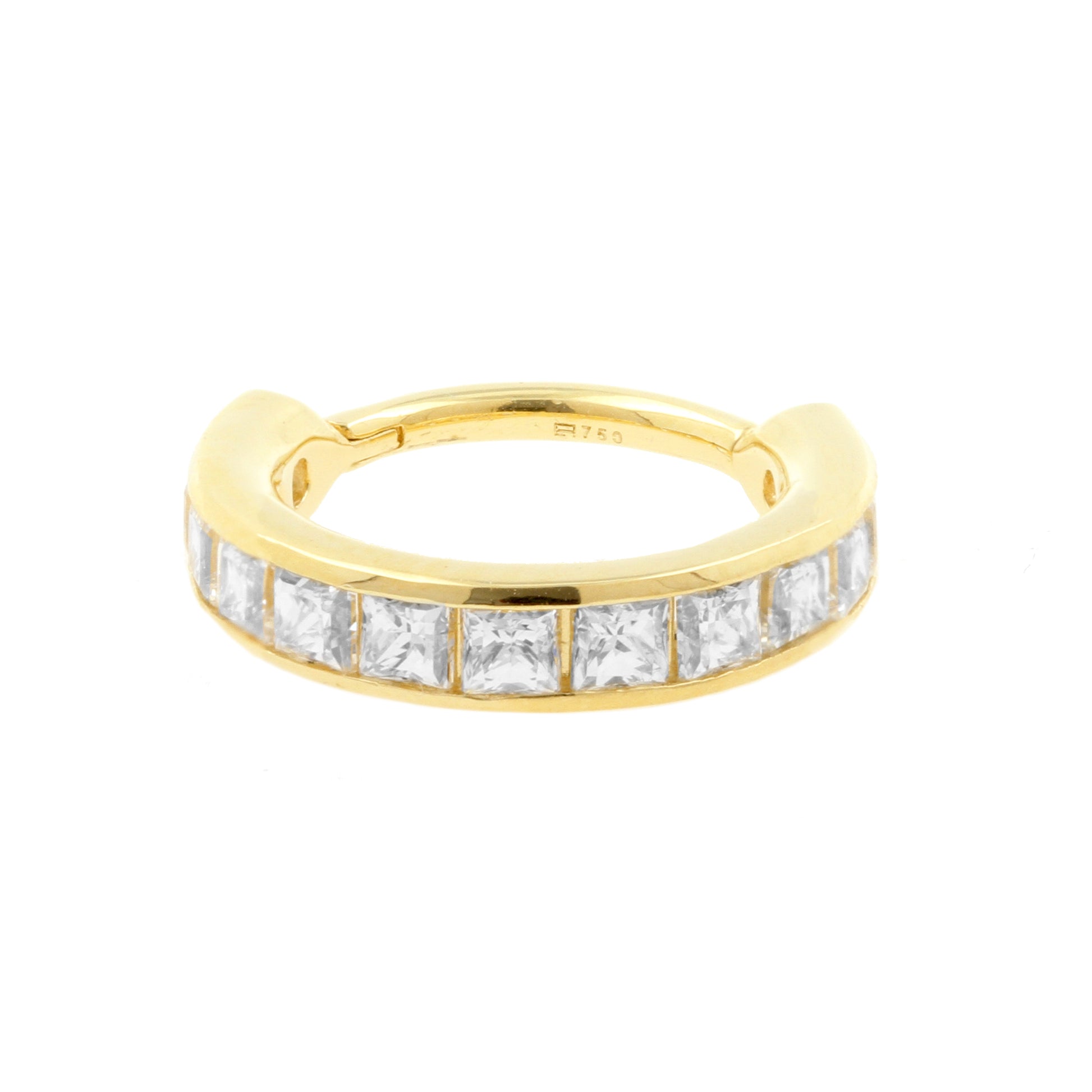 18 Karaats Gouden Conch Clicker - Zirkonia Princess Cut Clear