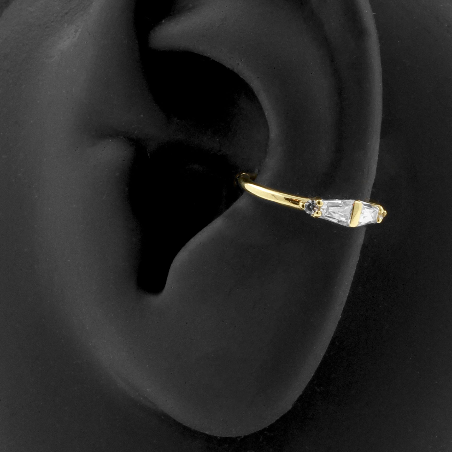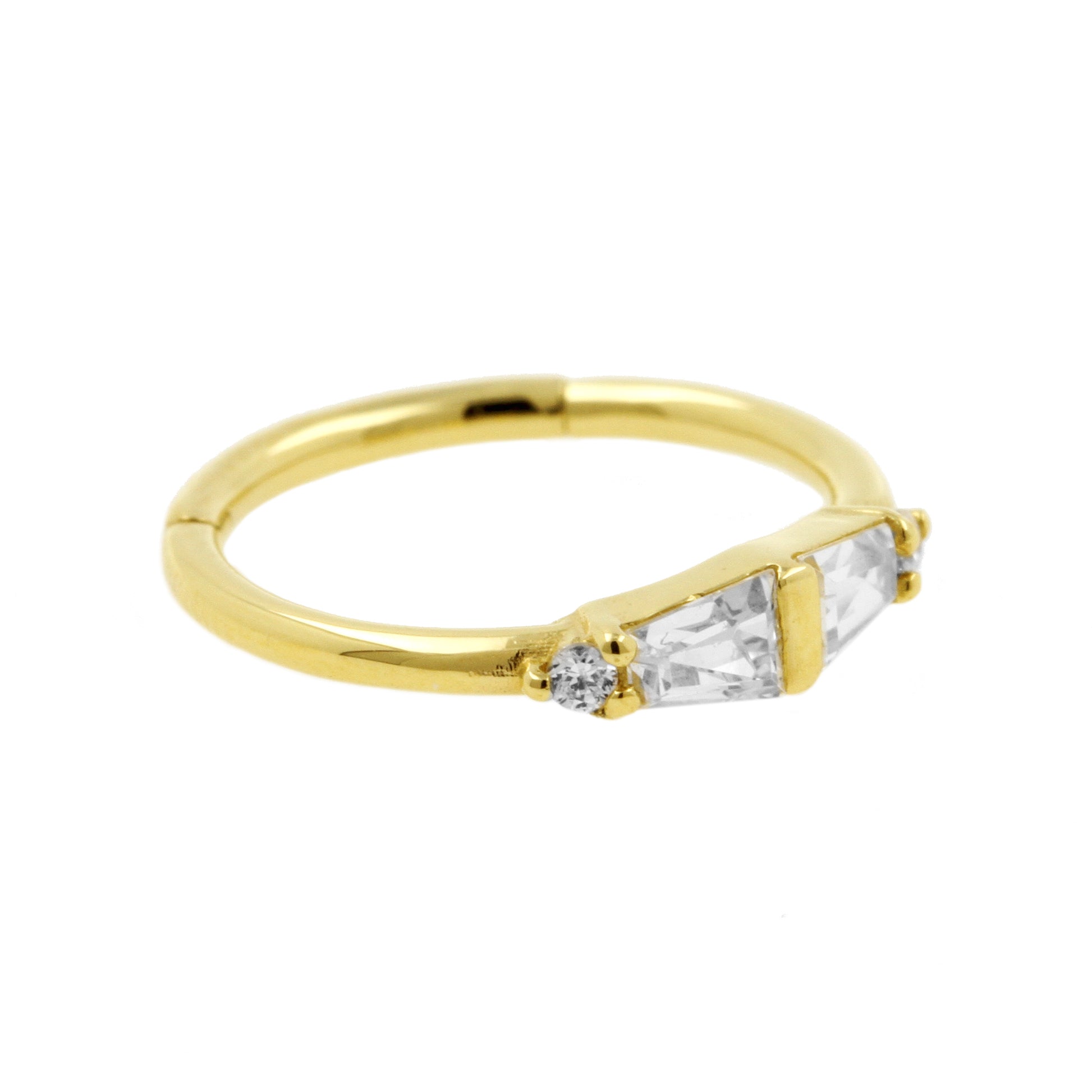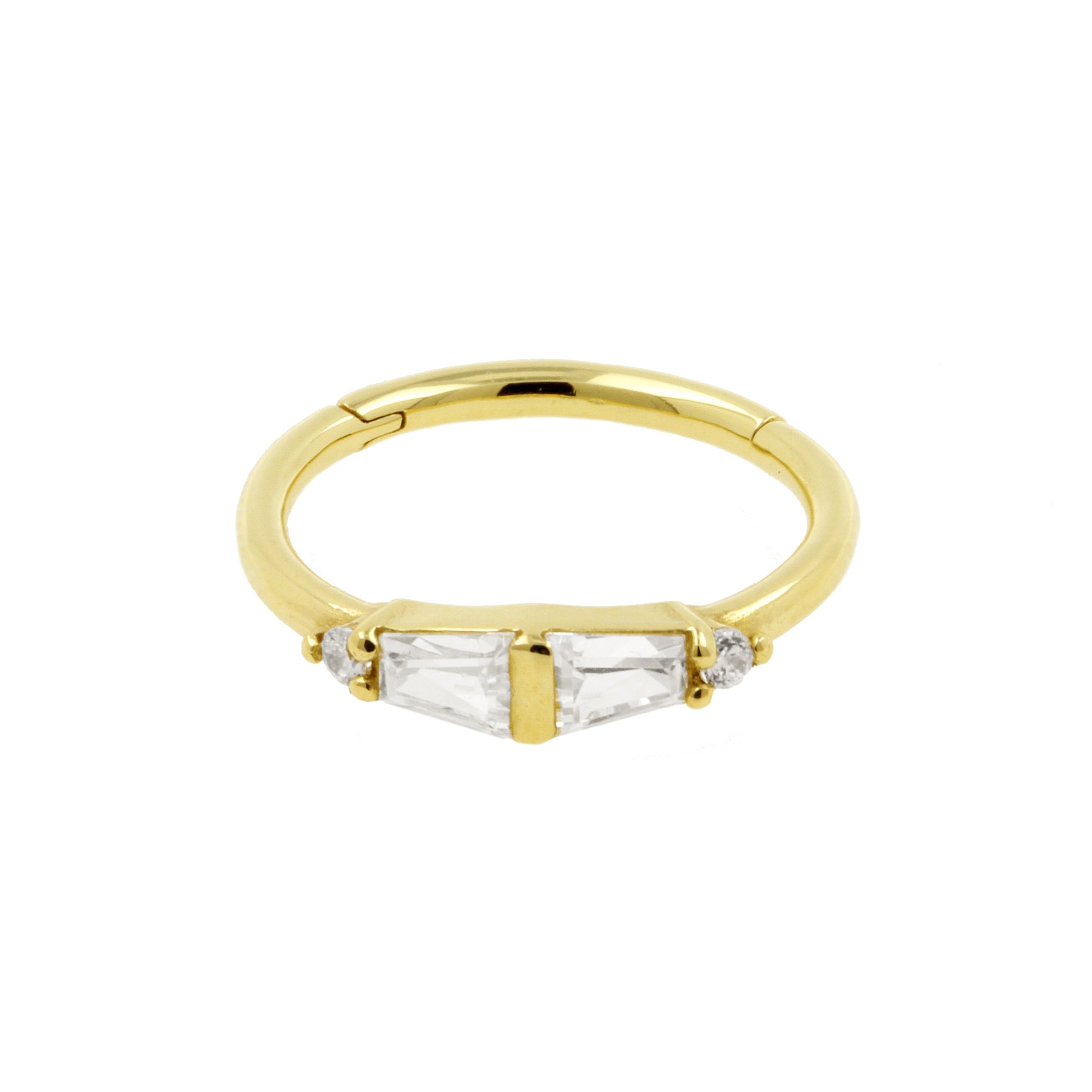 18 Karaats Gouden Conch Clicker - Zirkonia Trapezoids Clear