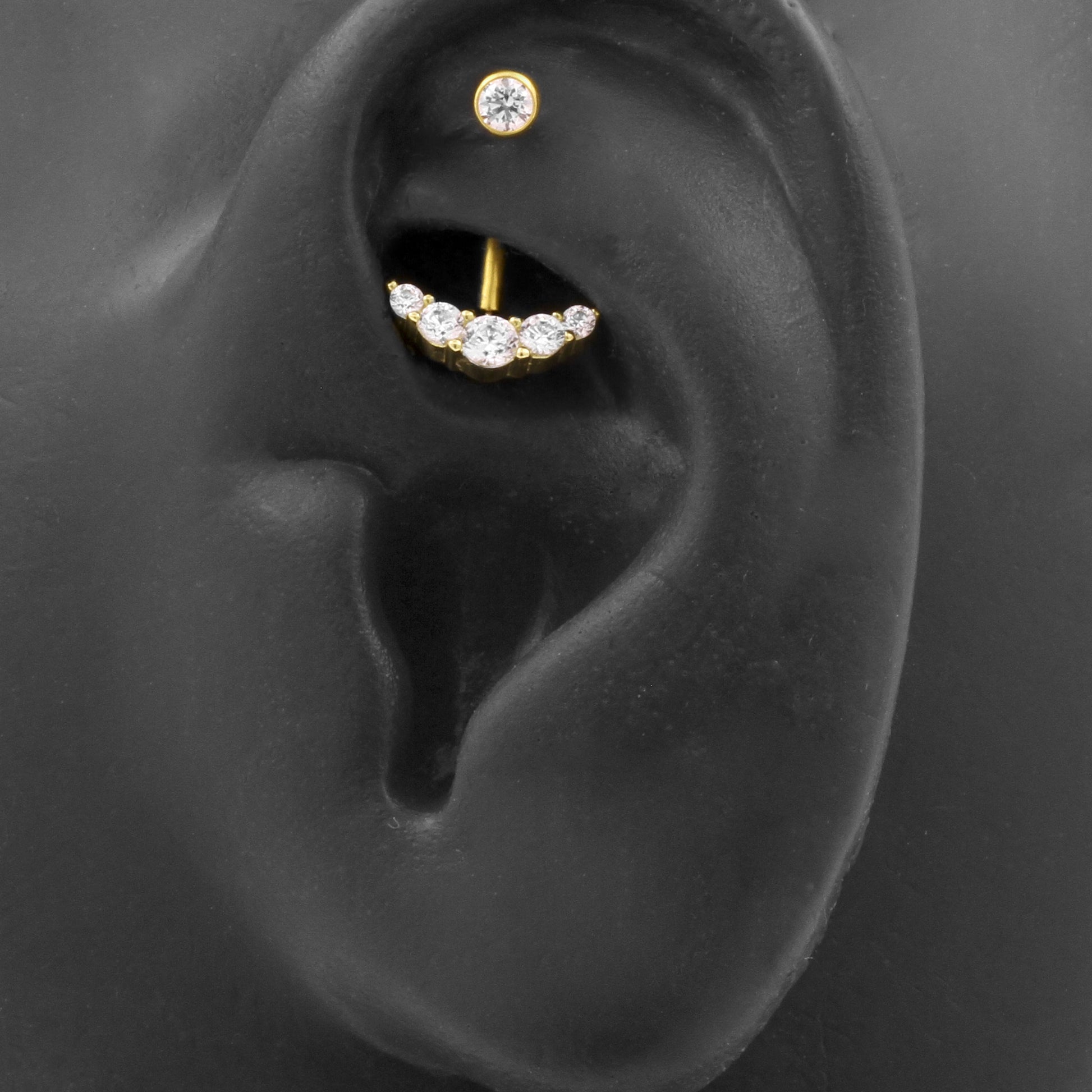 - Het staafje is gemaakt van titanium, het accessoire is gemaakt van echt, 18 karaats goud met zirkonia