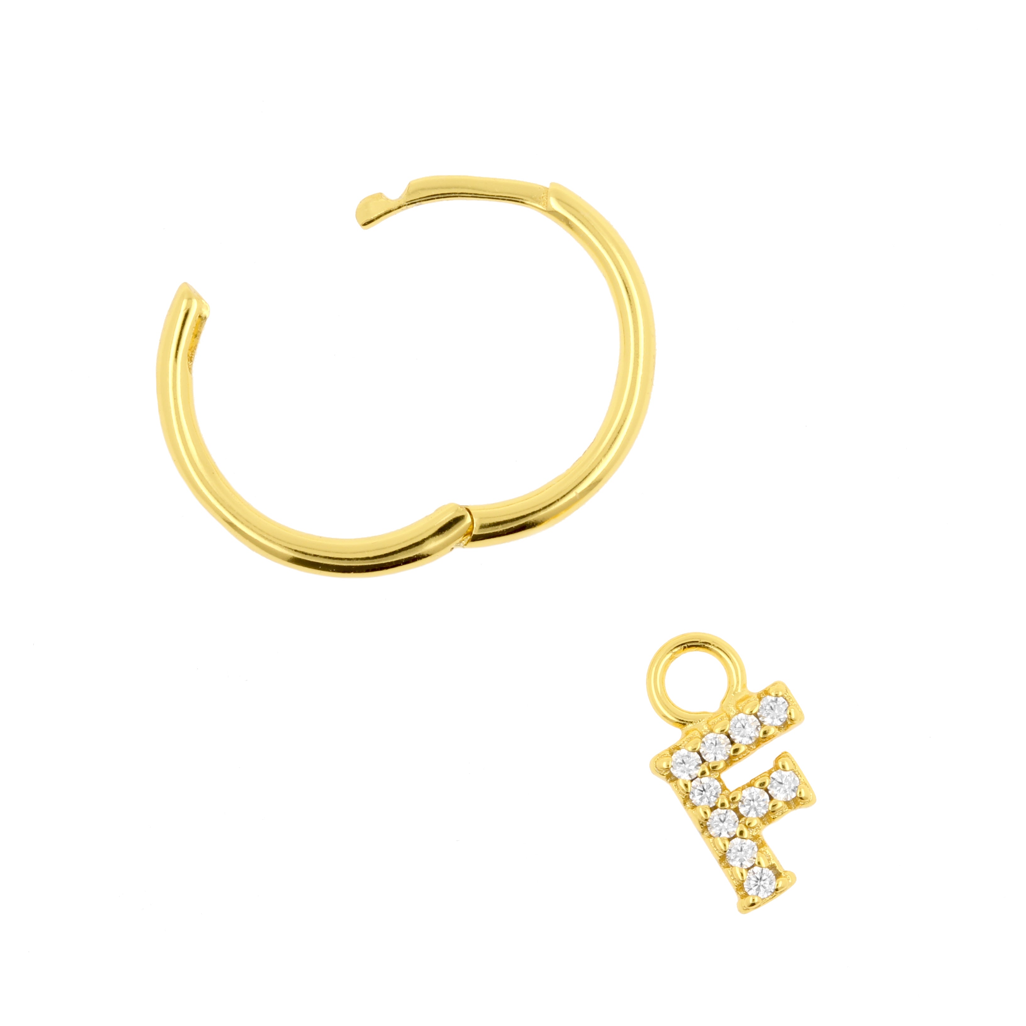 925 Zilver Alfabet Letter Oorbel - F Goud