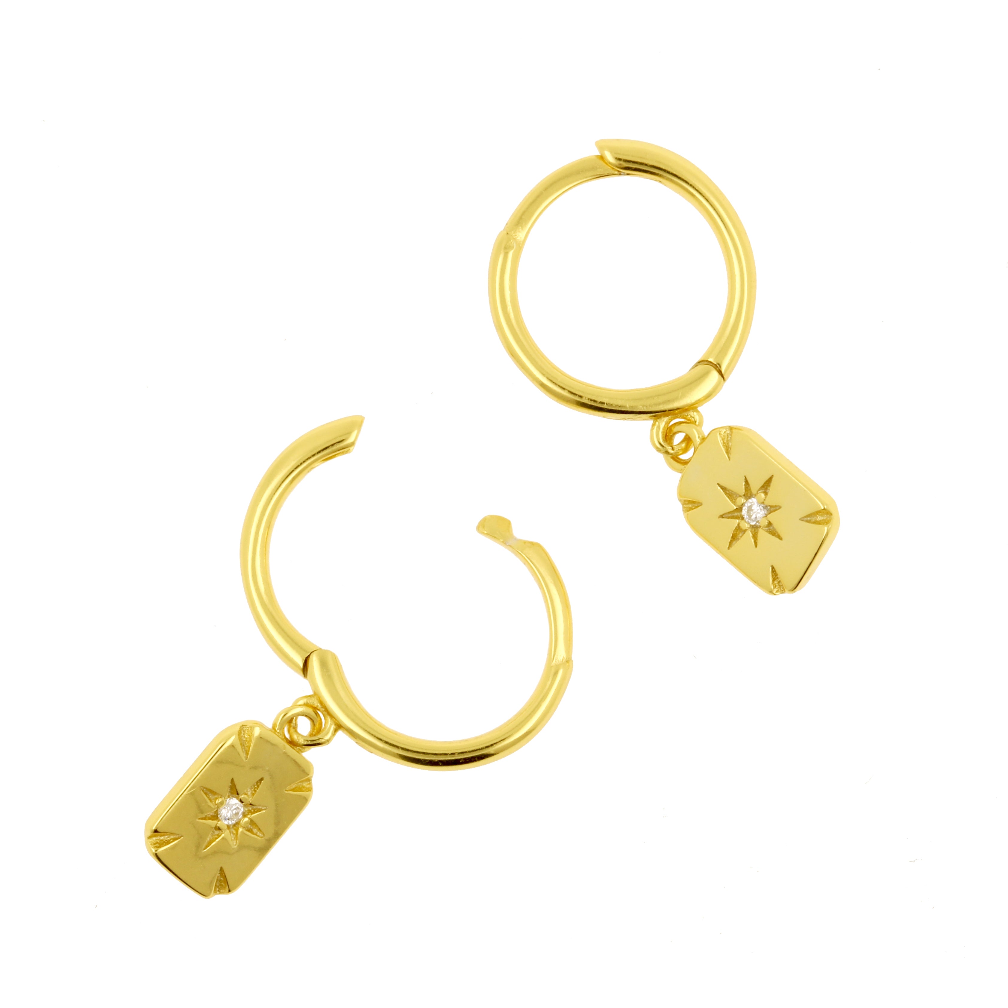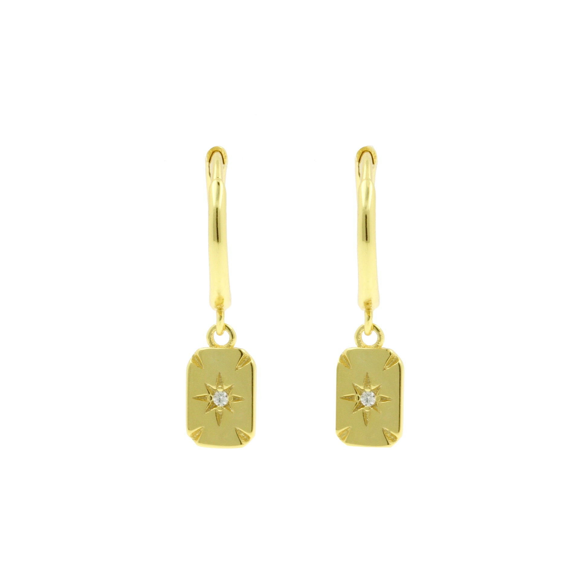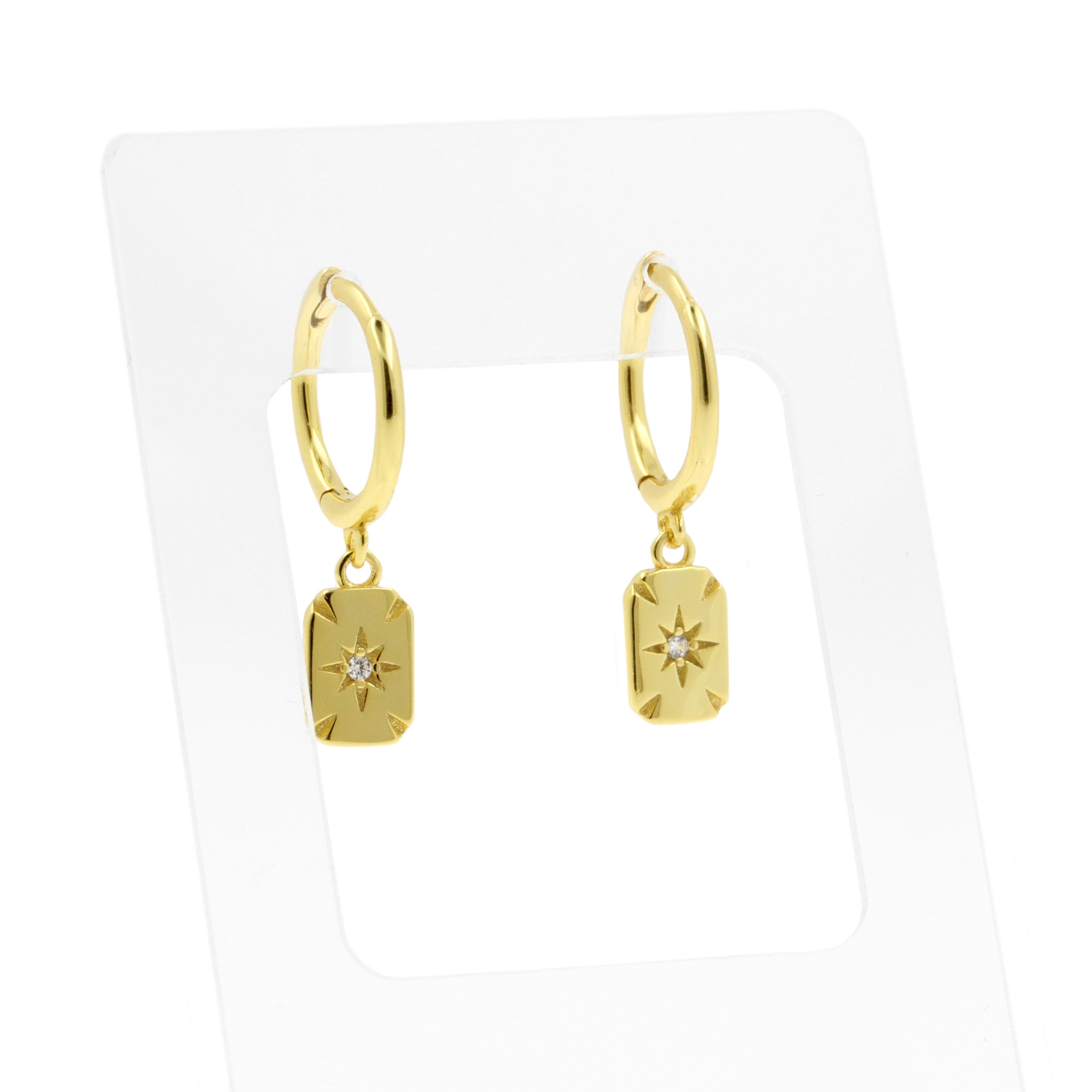 925 Zilver Oorringen - Zirkonia Square Goud