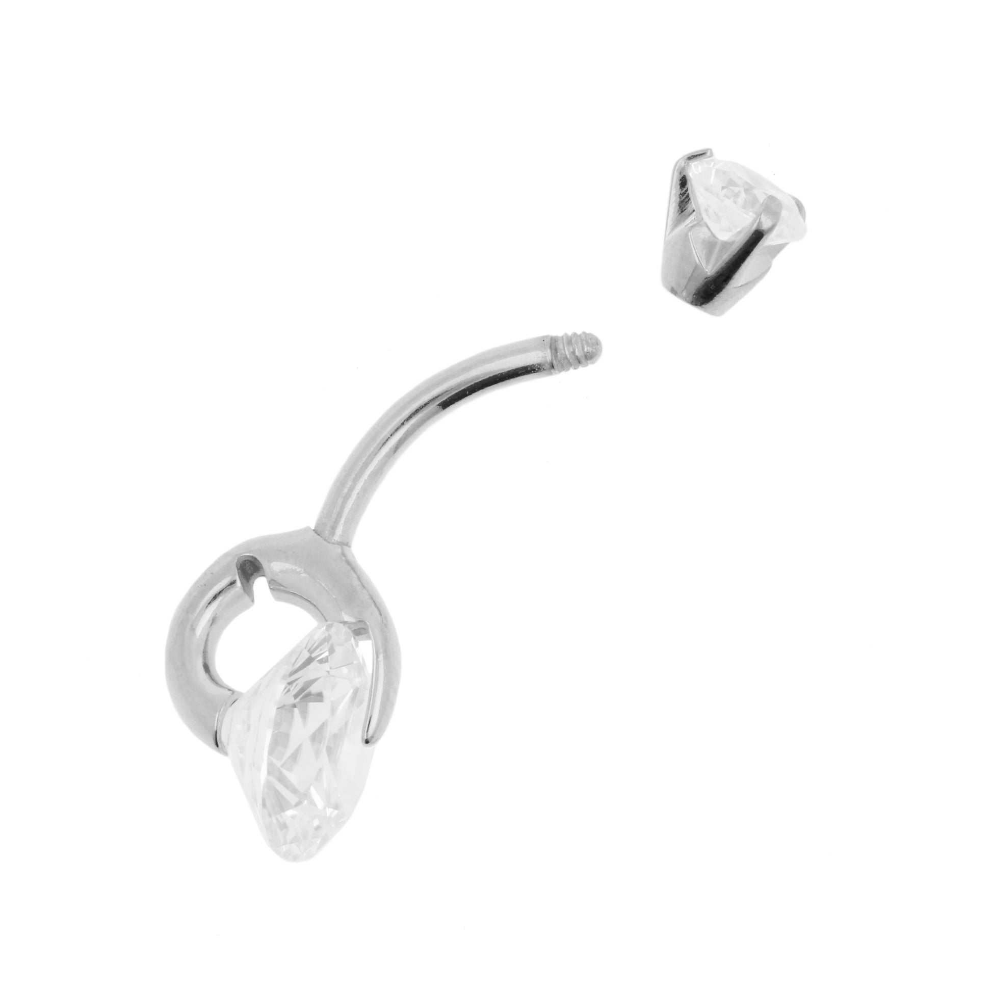 Elegant en verfijnd: dit navelpiercing sieraad heeft een clear zirkonia in zwevende stijl voor maximale zichtbaarheid en schittering. Vervaardigd uit hoogwaardig chirurgisch staal met een glad gepolijste afwerking voor comfortabel, langdurig dragen.
