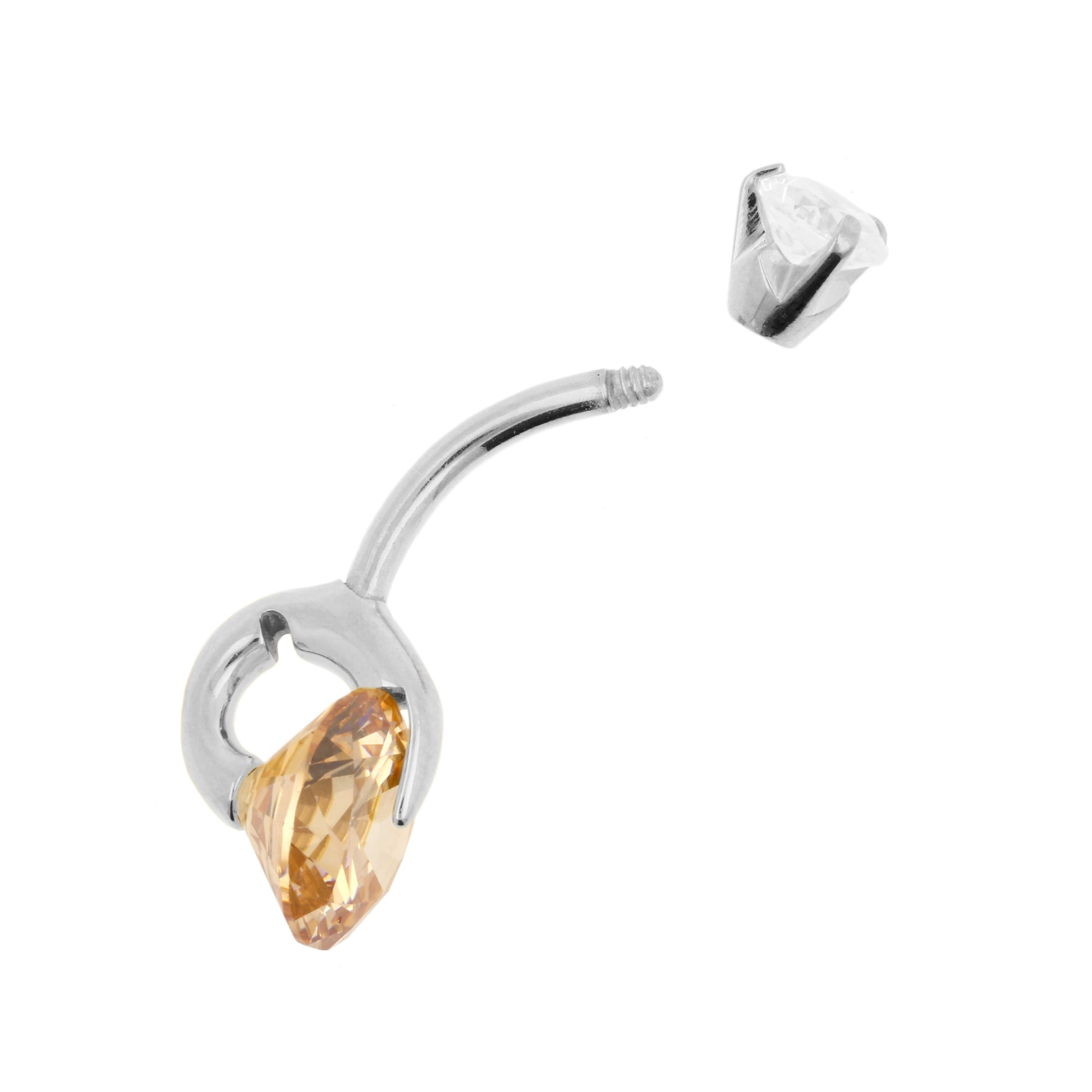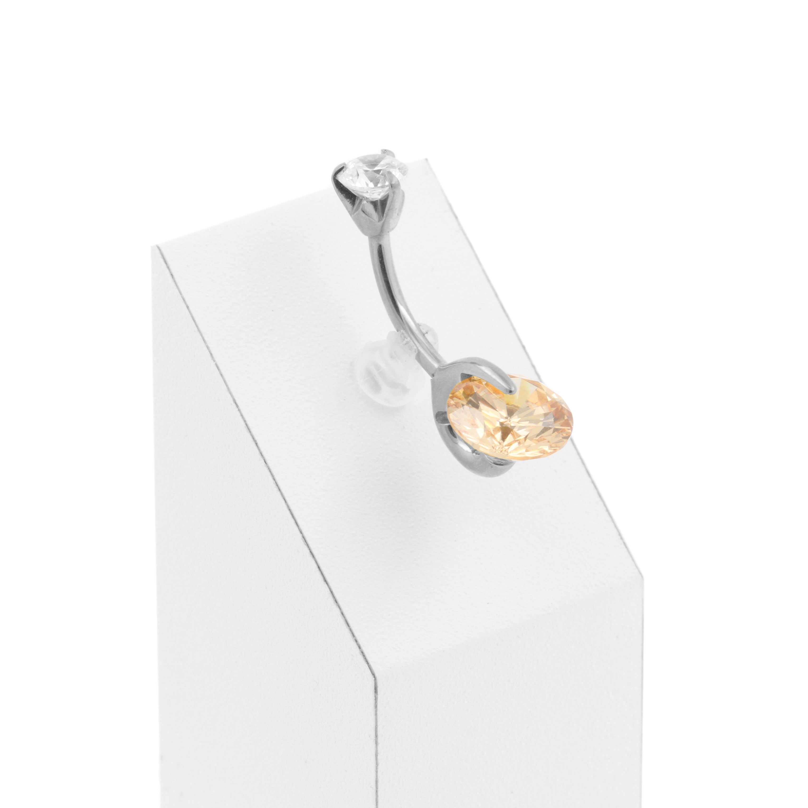 Elegant en verfijnd: dit navelpiercing sieraad heeft een champagne zirkonia in zwevende stijl voor maximale zichtbaarheid en schittering. Vervaardigd uit hoogwaardig chirurgisch staal met een glad gepolijste afwerking voor comfortabel, langdurig dragen.