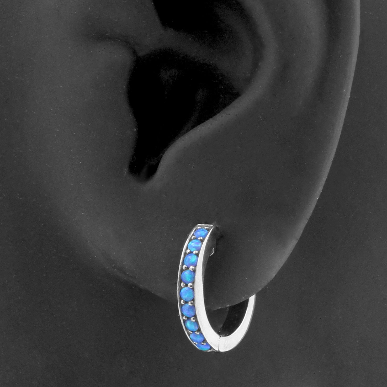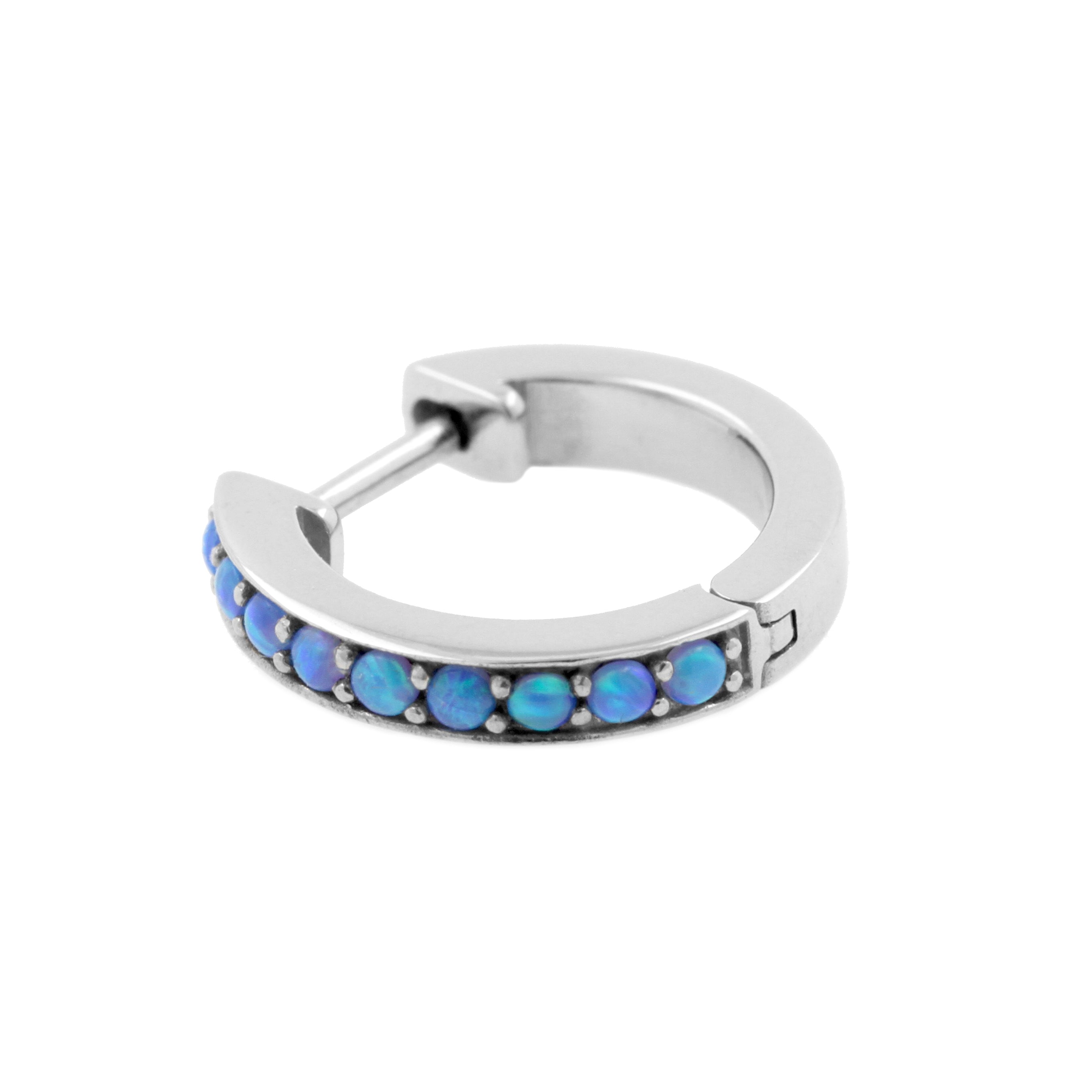 Chirurgisch Stalen Click Hoop Oorbellen Met Opaal Sapphire Blue Opal