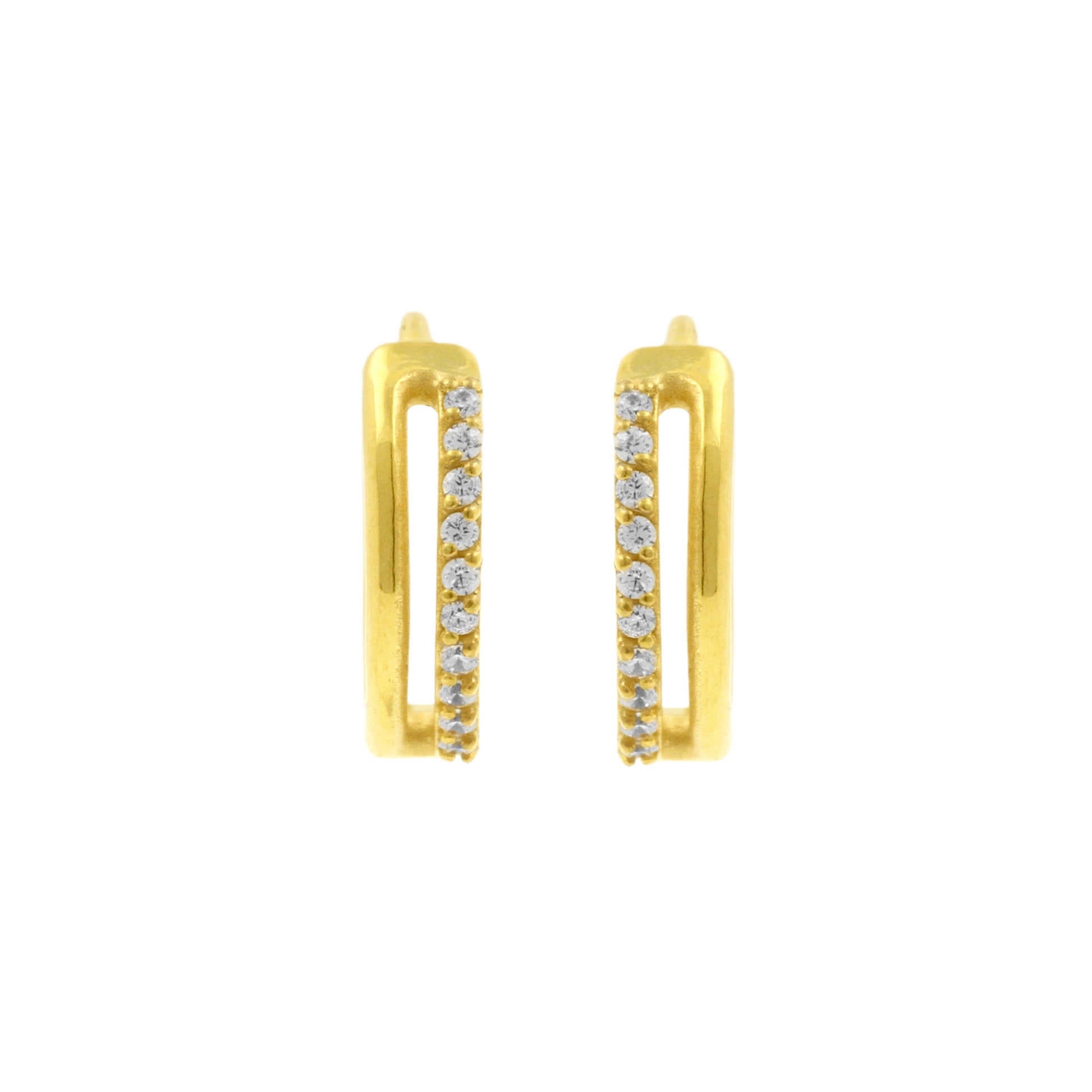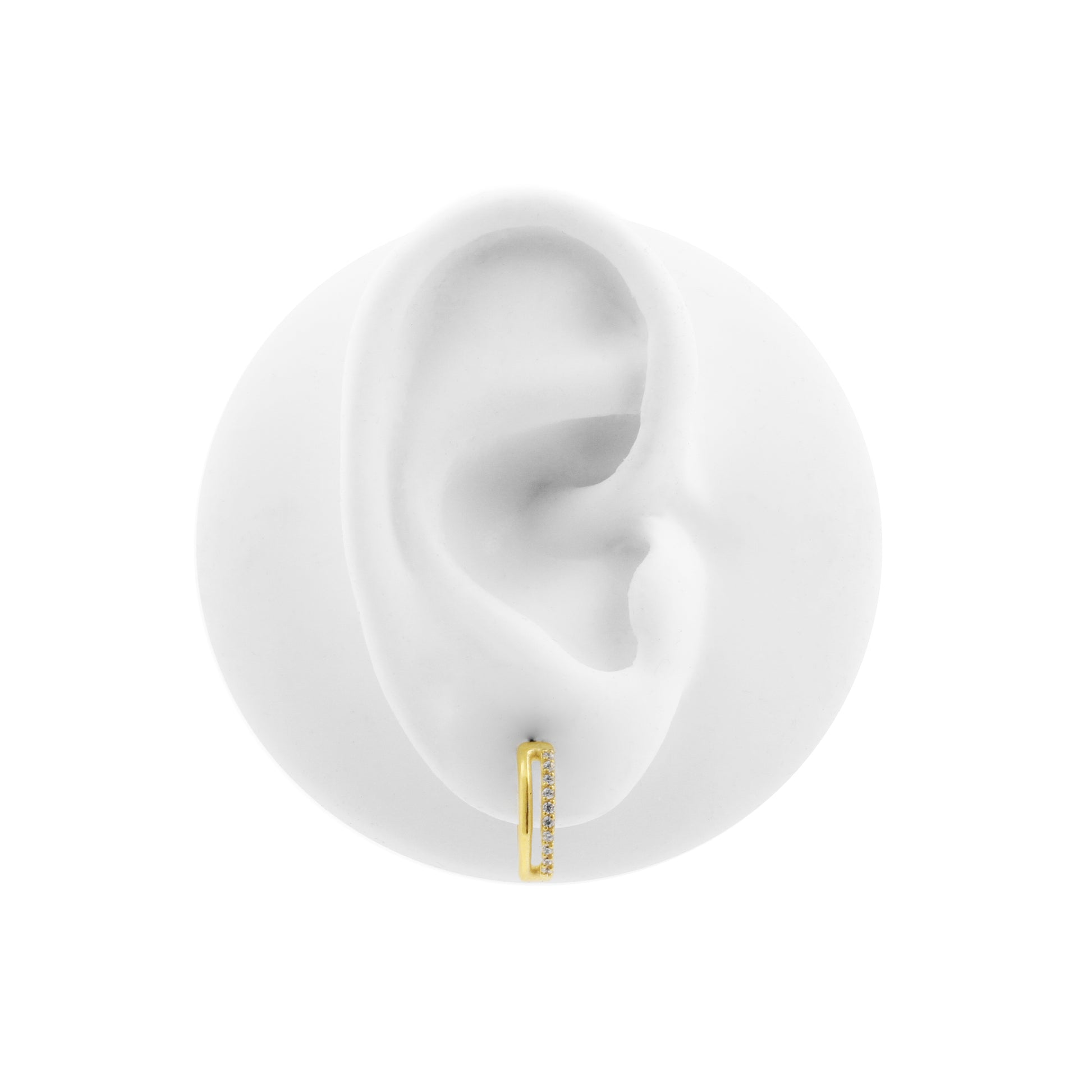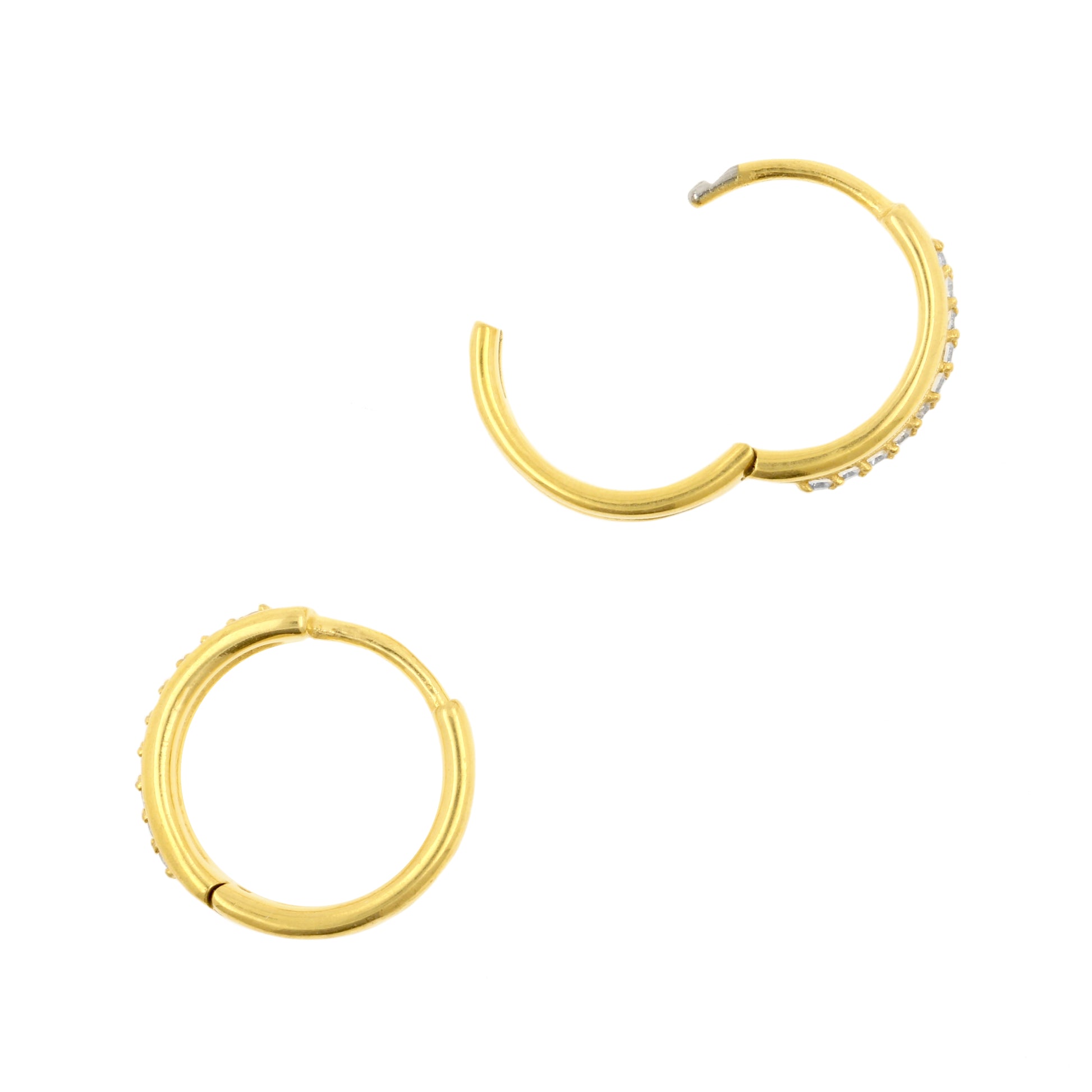 Geef je look een gouden upgrade met deze chirurgisch stalen click hoops met zirkonia. De duurzame goudkleurige afwerking en sprankelende steen maken dit een subtiele eyecatcher — ideaal solo of als onderdeel van een ear stack.