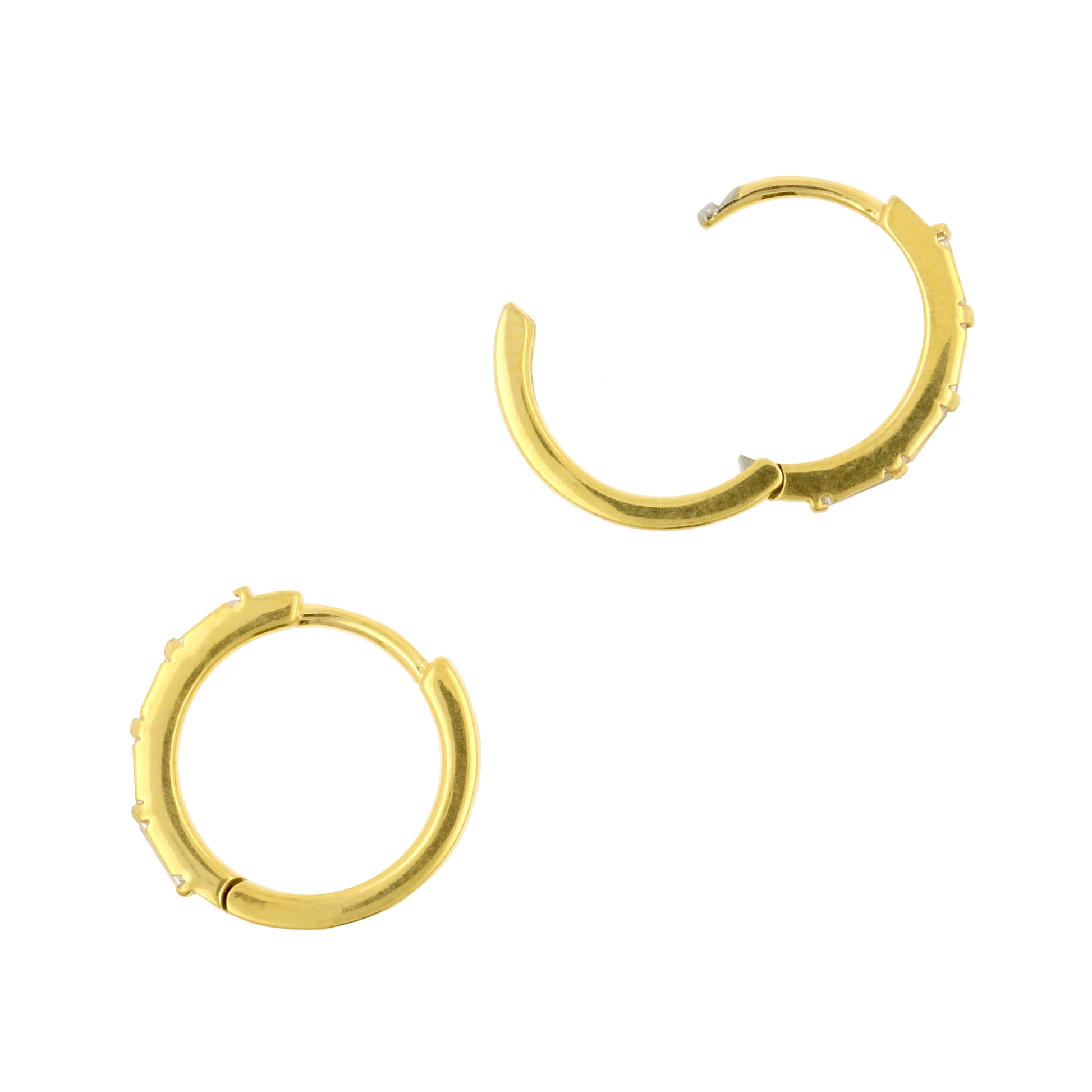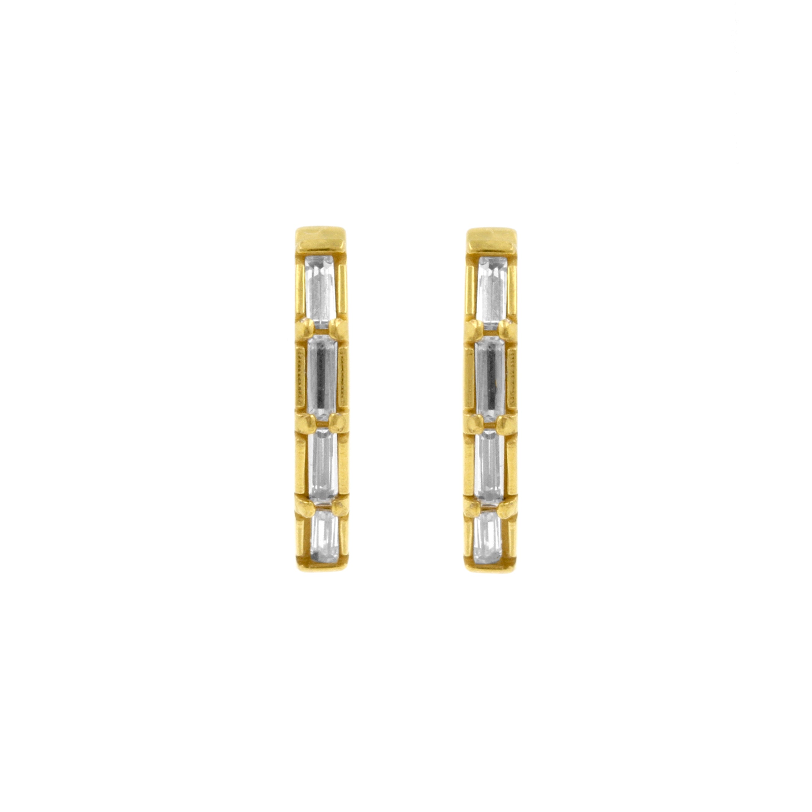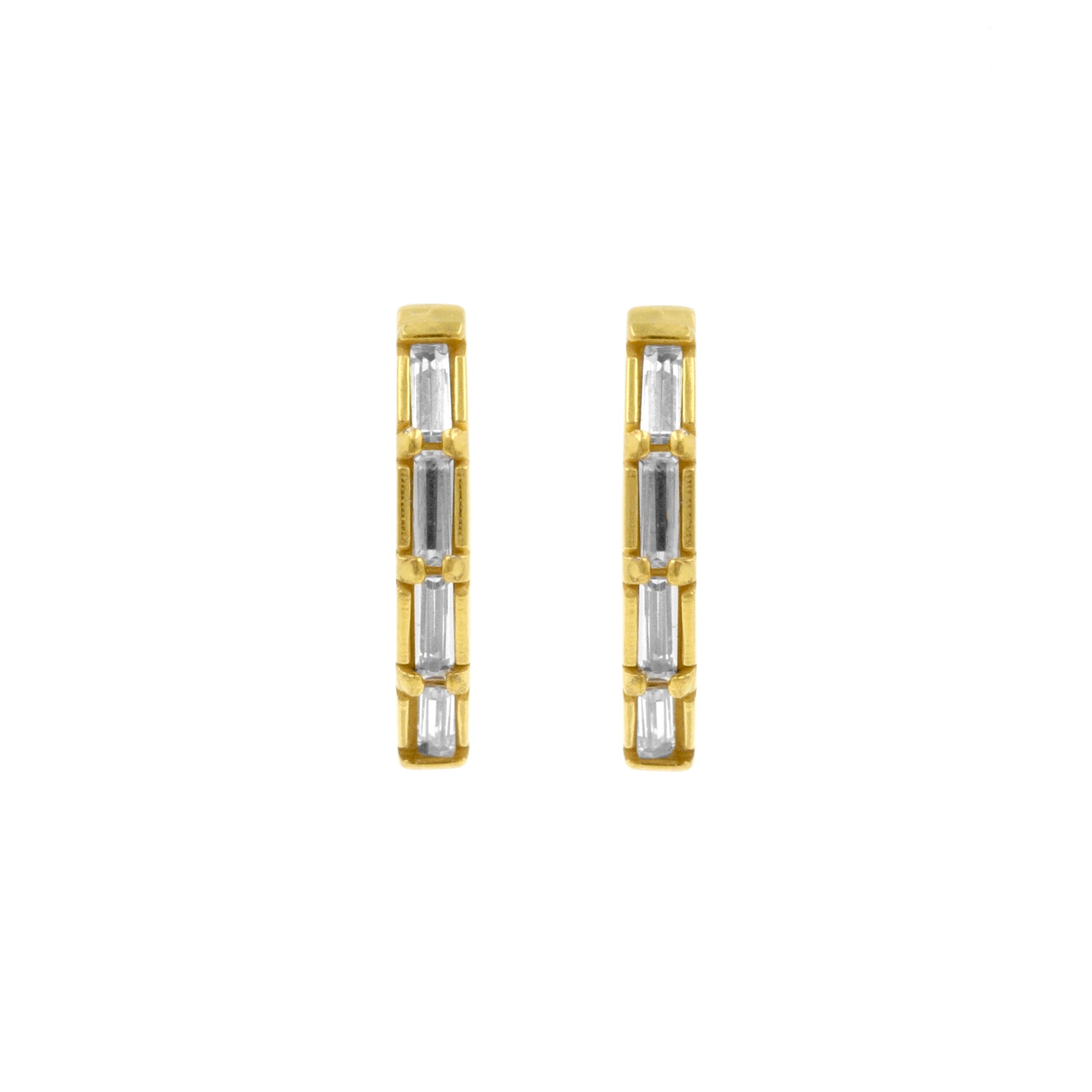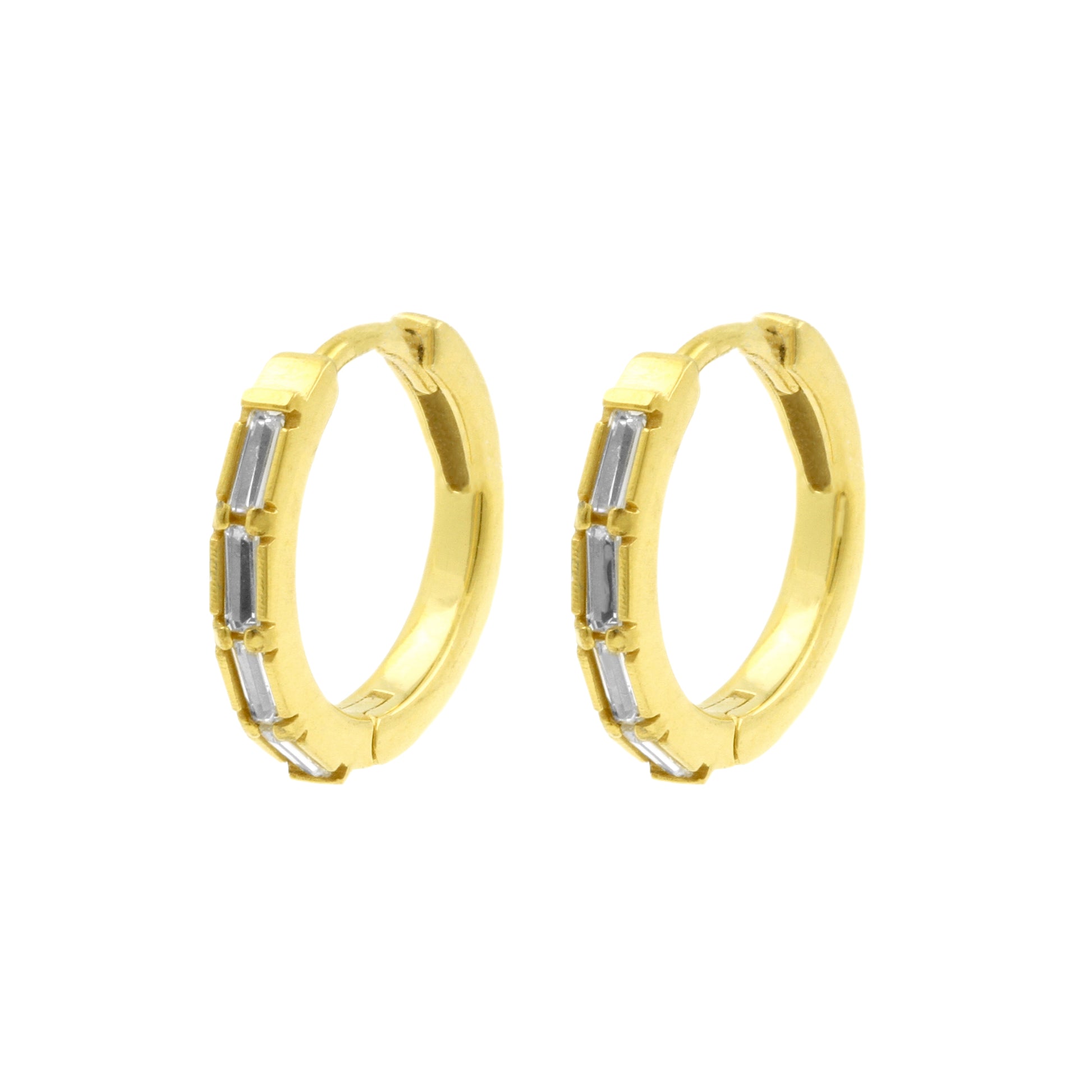 Geef je look een gouden upgrade met deze chirurgisch stalen click hoops met rechthoekige zirkonia. De duurzame goudkleurige afwerking en sprankelende steen maken dit een subtiele eyecatcher — ideaal solo of als onderdeel van een ear stack.
