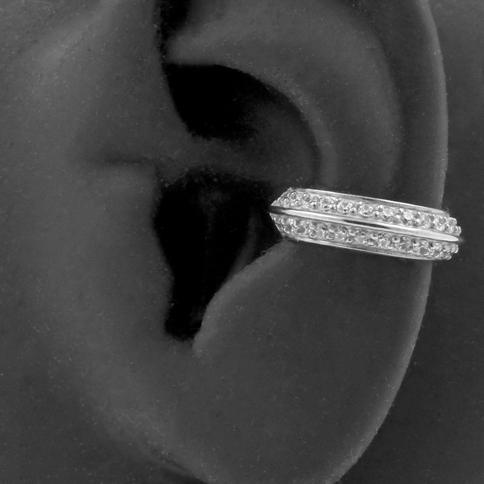 Chirurgisch Stalen Conch Clicker - Double Zirkonia Zilver