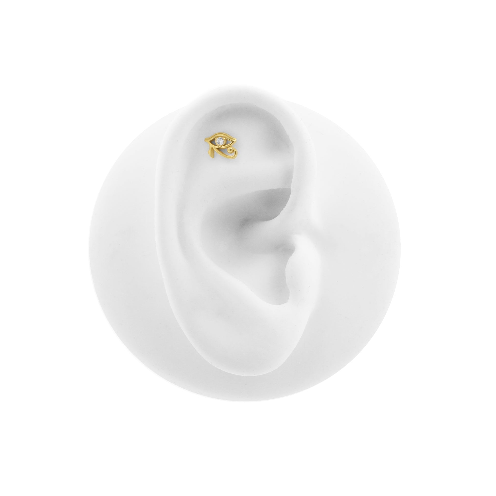 Chirurgisch Stalen Oog van Horus Top - Goud geeft je piercing direct een stijlvolle uitstraling. Deze Threadless Top is vervaardigd uit Chirurgisch Staal. Dankzij het threadless systeem combineer je deze top eenvoudig met al onze staafjes, die wij Threadless Base noemen, voor een perfecte pasvorm en ultiem draagcomfort.