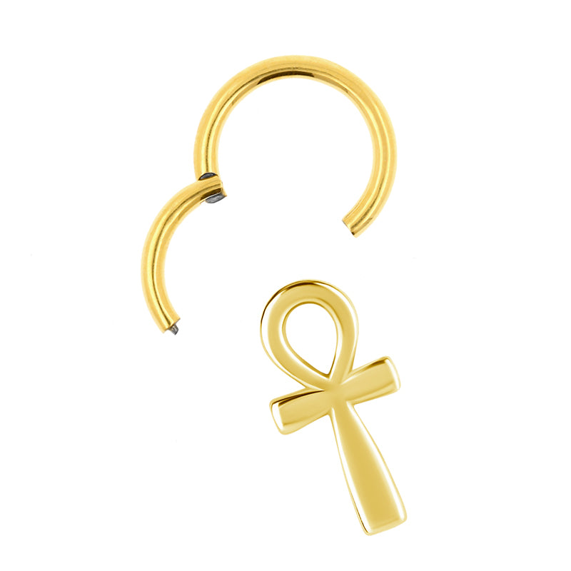 Nikkelvrij Staal Click Ring Bedel - Ankh Goud