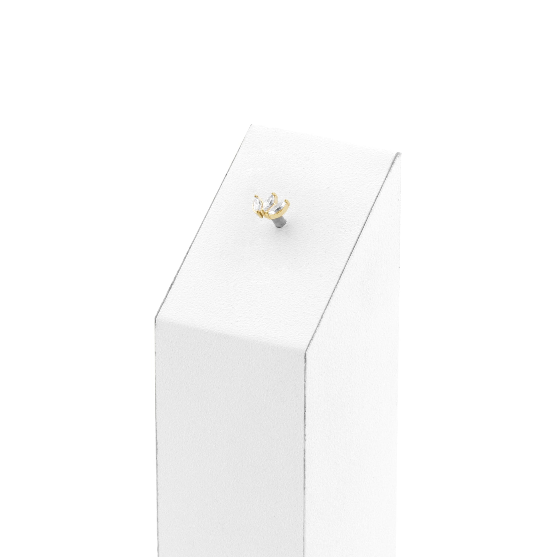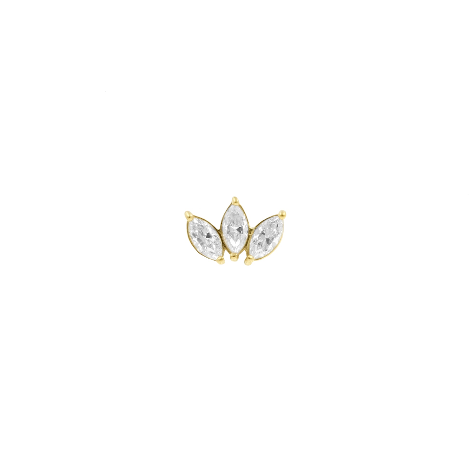 Nikkelvrij Staal - Zirkonia Curve - 3 Steentjes - Goud geeft je piercing direct een stijlvolle uitstraling. Deze Threadless Top is vervaardigd uit Nikkelvrij Staal met een cubic zirconia in de kleur Clear. Dankzij het threadless systeem combineer je deze top eenvoudig met al onze staafjes, die wij Threadless Base noemen, voor een perfecte pasvorm en ultiem draagcomfort.