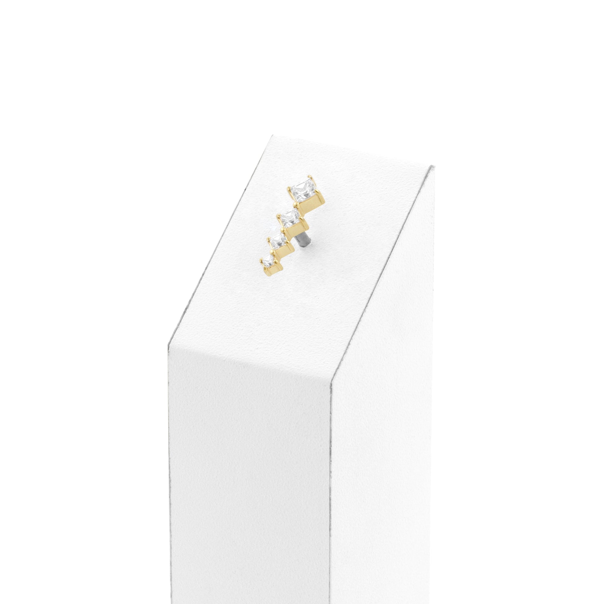 Nikkelvrij Staal - Zirkonia Squares - Goud geeft je piercing direct een stijlvolle uitstraling. Deze Threadless Top is vervaardigd uit Nikkelvrij Staal met een cubic zirconia in de kleur Clear. Dankzij het threadless systeem combineer je deze top eenvoudig met al onze staafjes, die wij Threadless Base noemen, voor een perfecte pasvorm en ultiem draagcomfort.