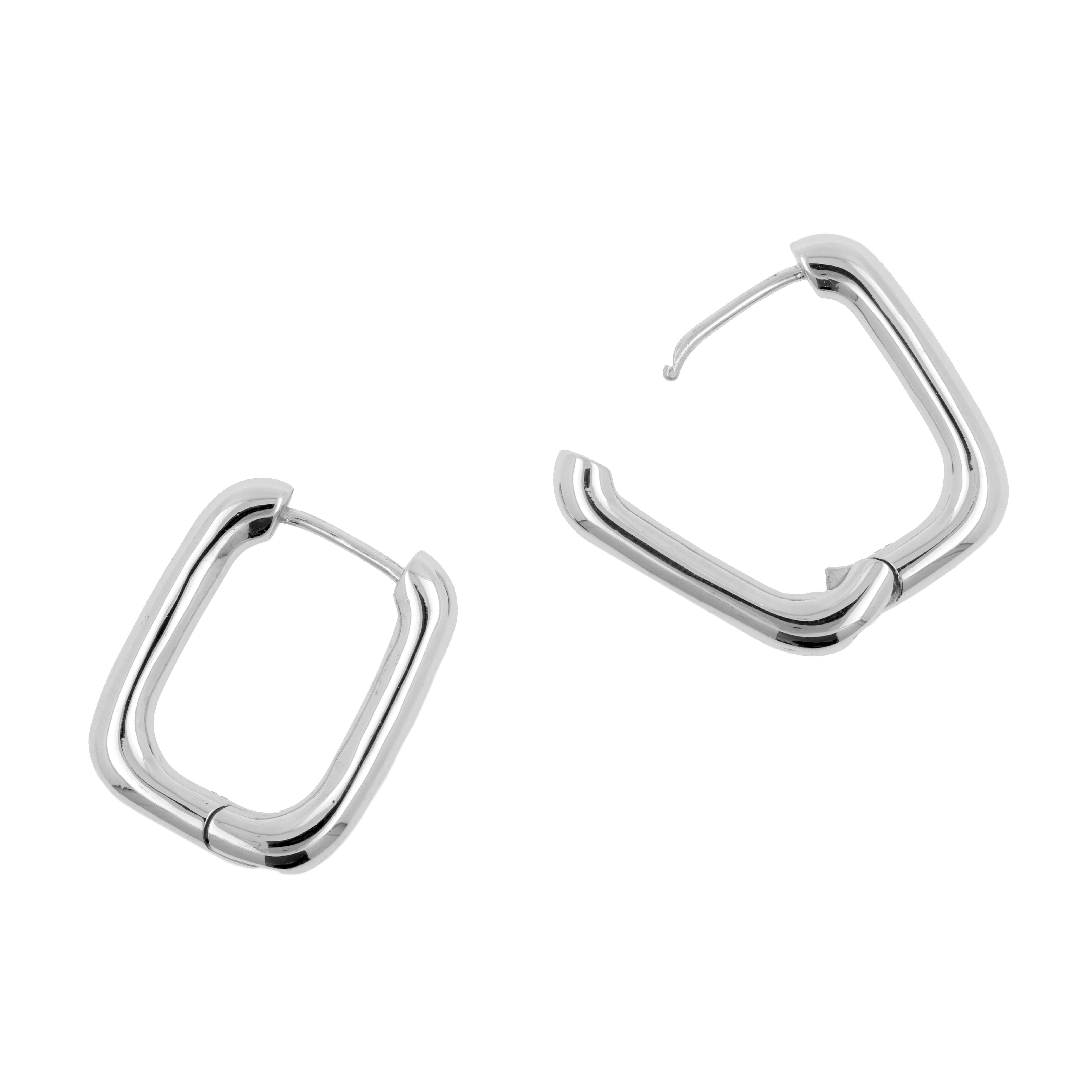 Nikkelvrij Stalen Click Hoop Oorbellen - Squared Dangle Zilver