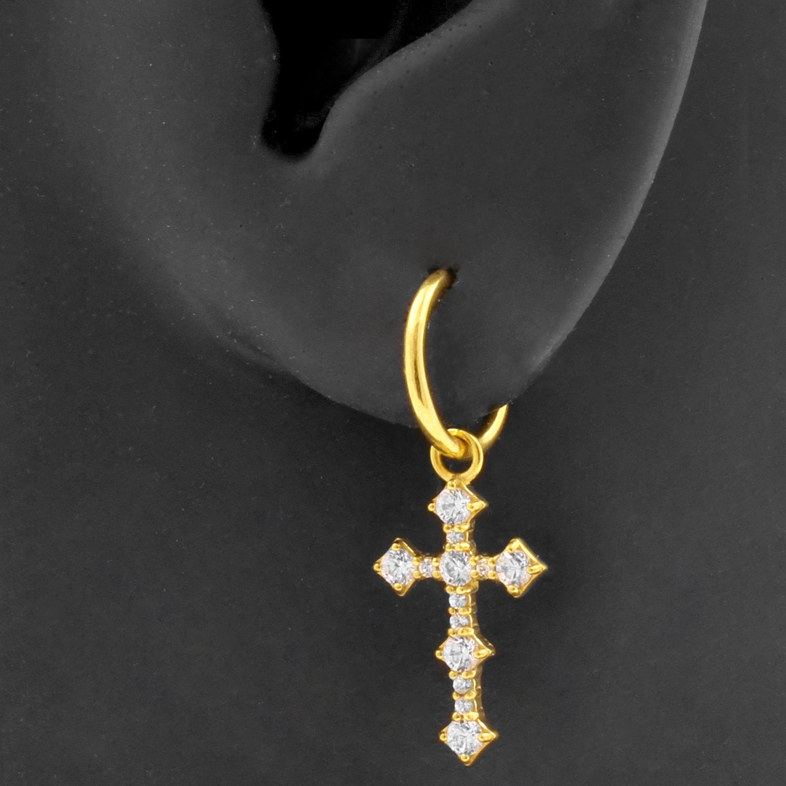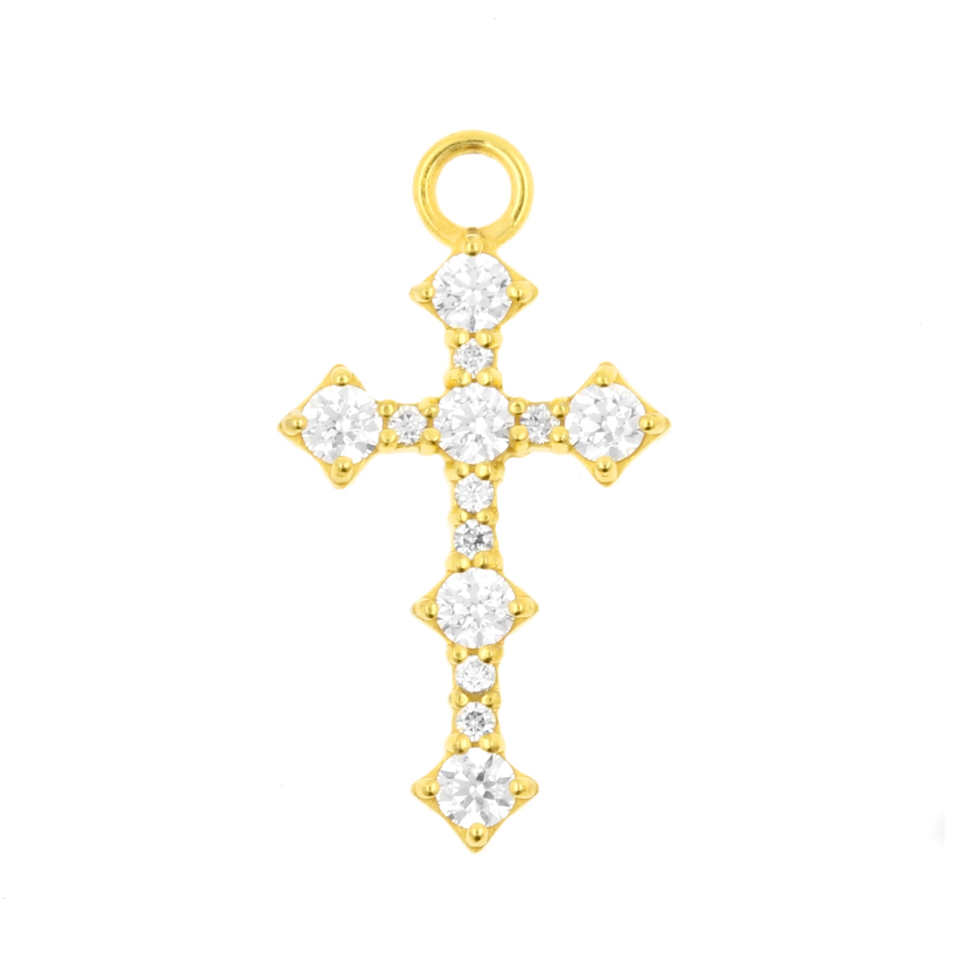 Nikkelvrij Stalen Click Ring Bedel - Zirkonia Cross Goud