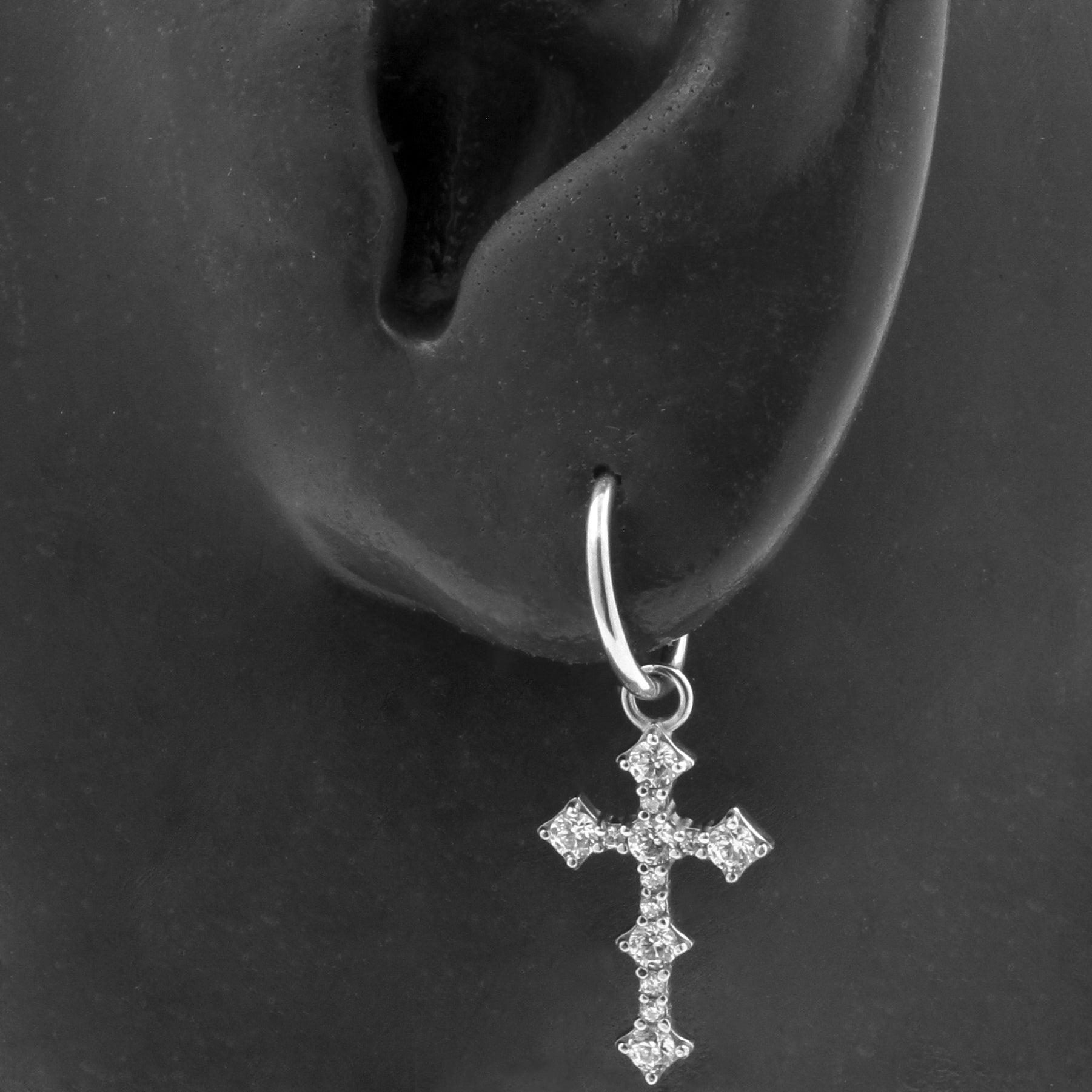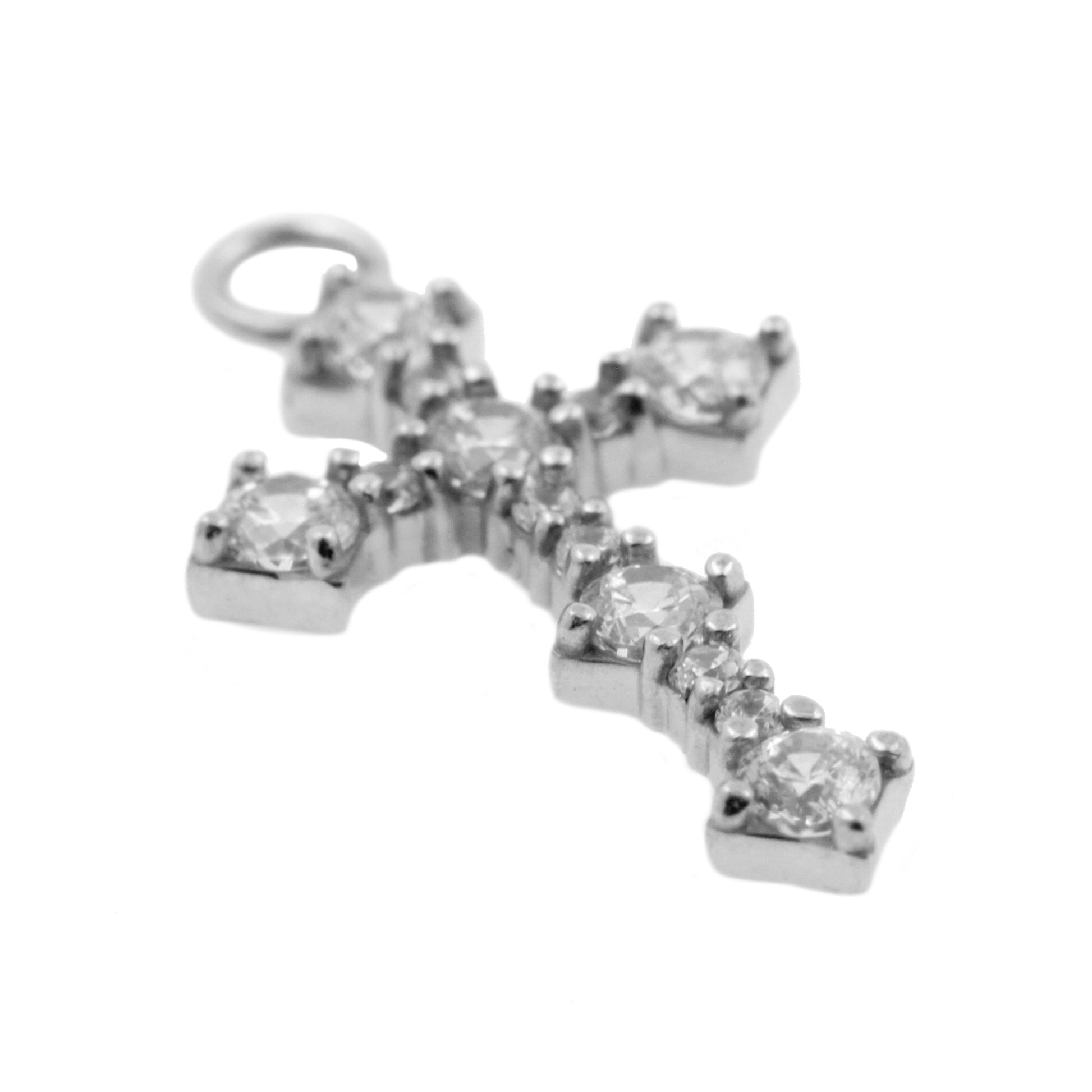 Nikkelvrij Stalen Click Ring Bedel - Zirkonia Cross Zilver