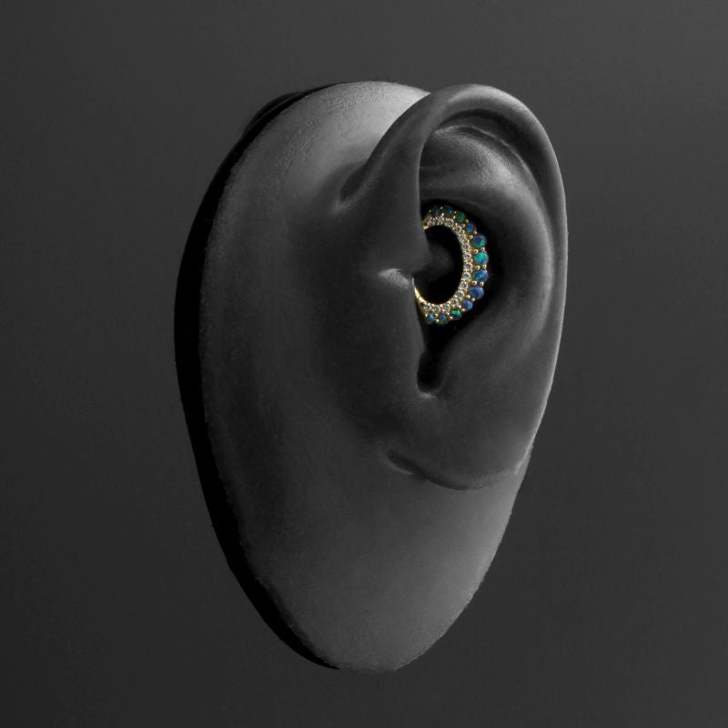 Nikkelvrij Stalen Daith Clicker - Opaal En Zirkonia Black Opal