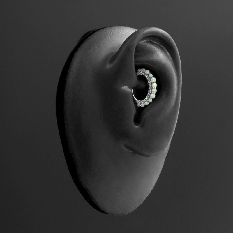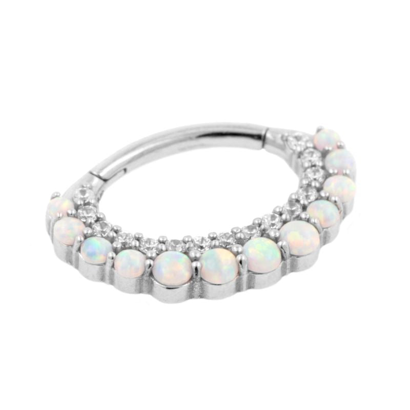 Nikkelvrij Stalen Daith Clicker - Opaal En Zirkonia White opal