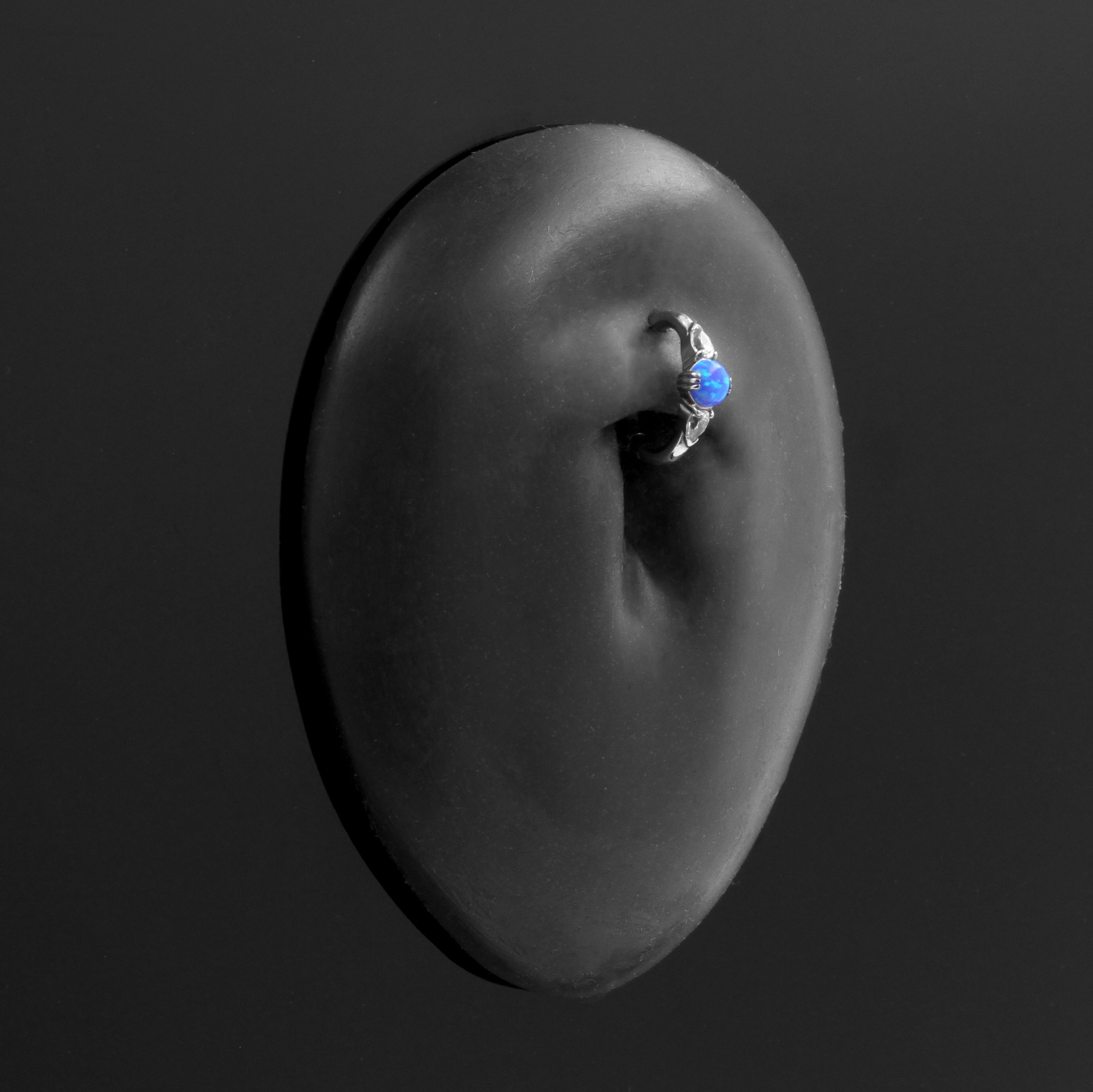 Nikkelvrij Stalen Navel Clicker - Opaal En Zirkonia Sapphire Blue Opal