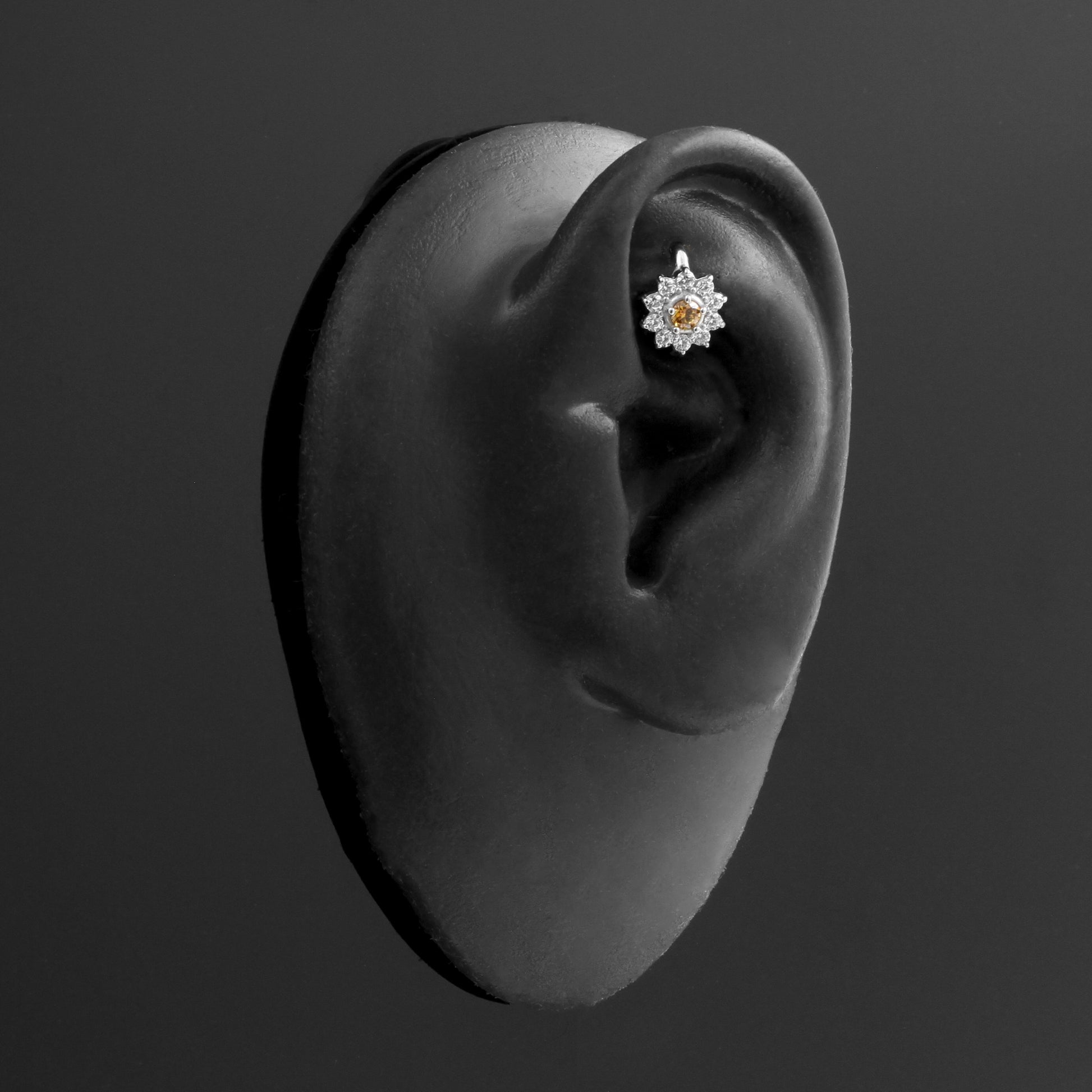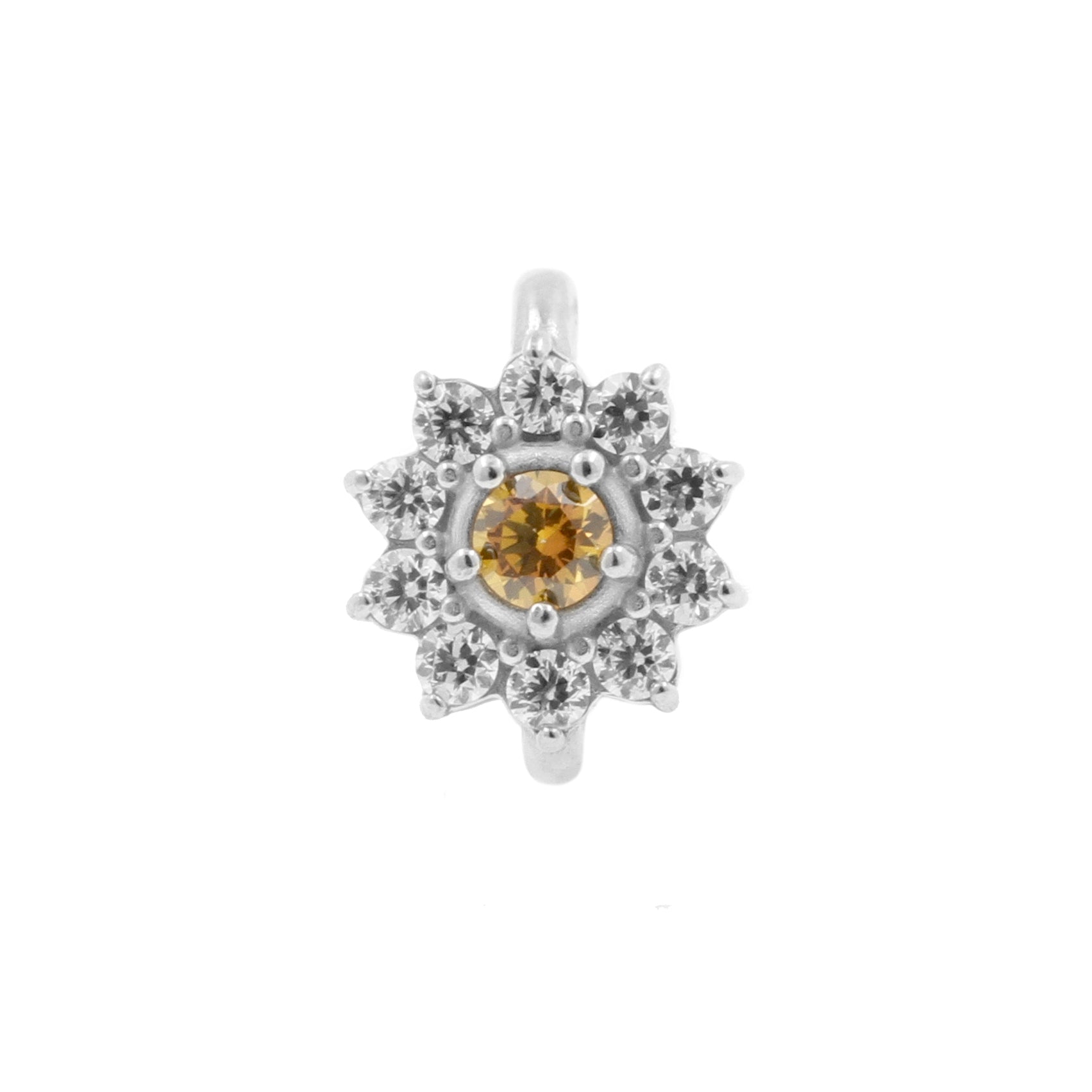 Nikkelvrij Stalen Rook Clicker - Zirconia Flower Golden Amber / White
