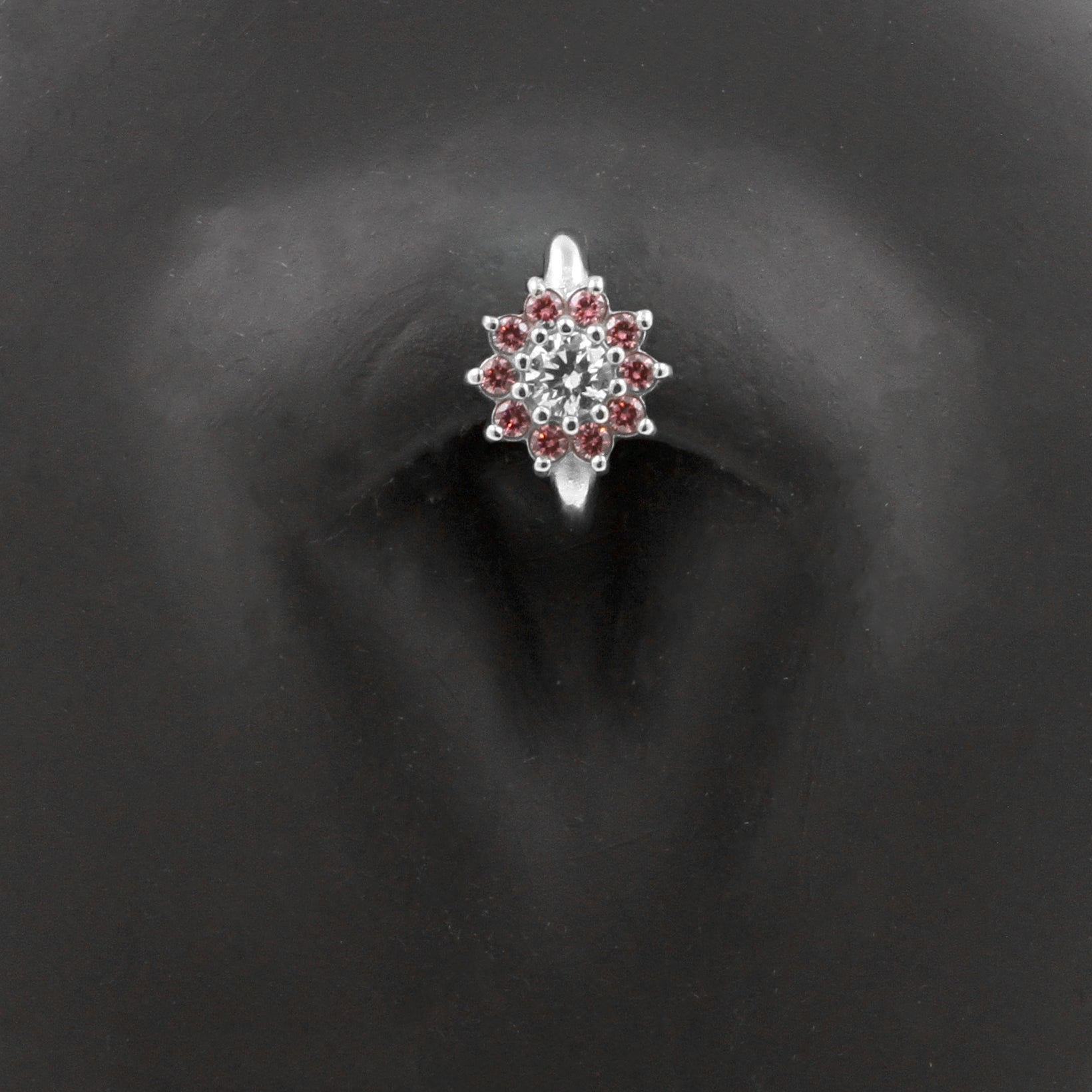 Nikkelvrij Stalen Zirkonia Navel Clicker - Flower Clear / Pink