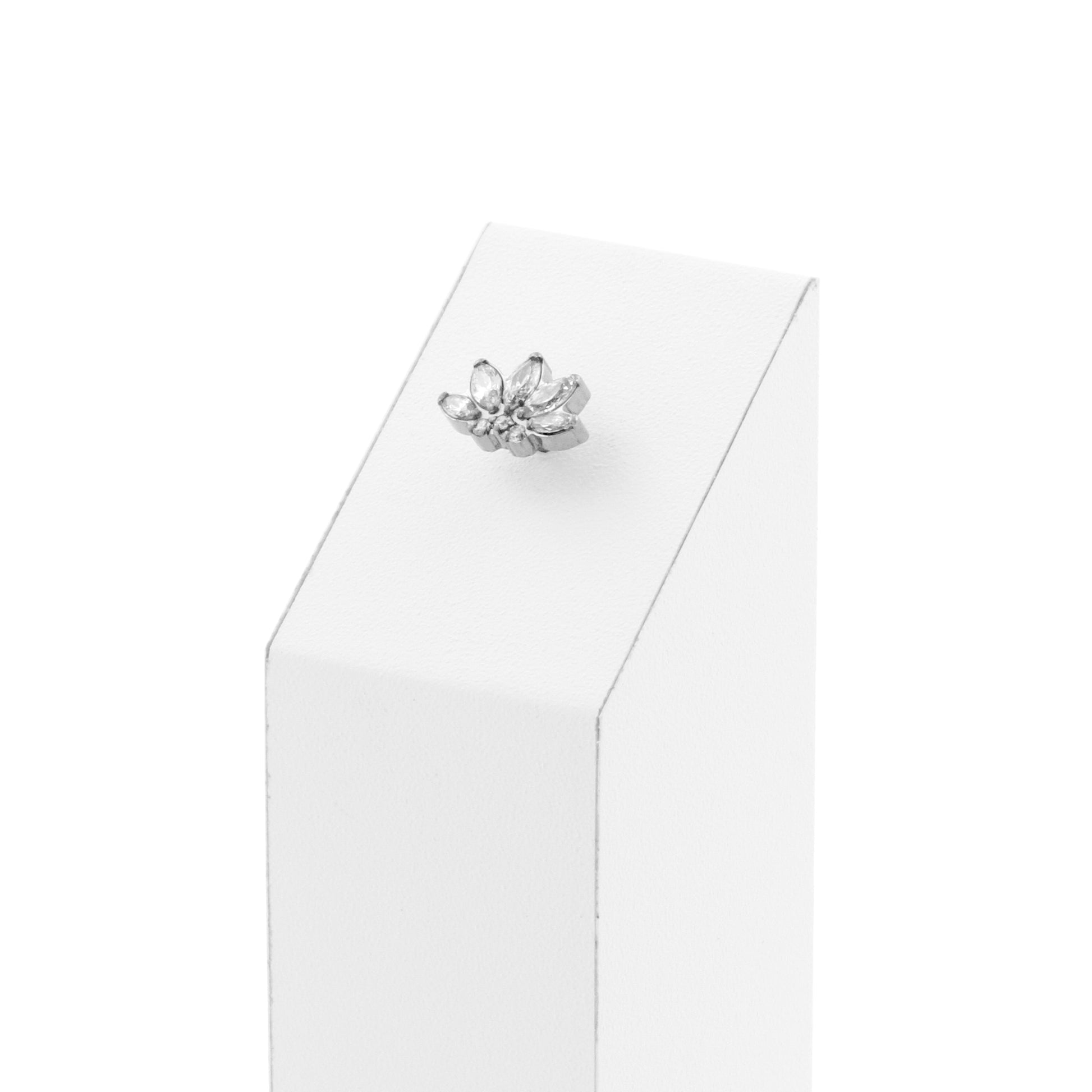Titanium Marquise Zirkonia Fan Cluster - Zilver geeft je piercing direct een stijlvolle uitstraling. Deze Threadless Top is vervaardigd uit Titanium. Dankzij het threadless systeem combineer je deze top eenvoudig met al onze staafjes, die wij Threadless Base noemen, voor een perfecte pasvorm en ultiem draagcomfort.