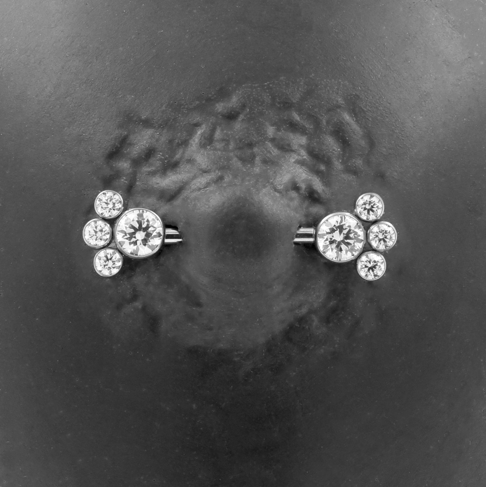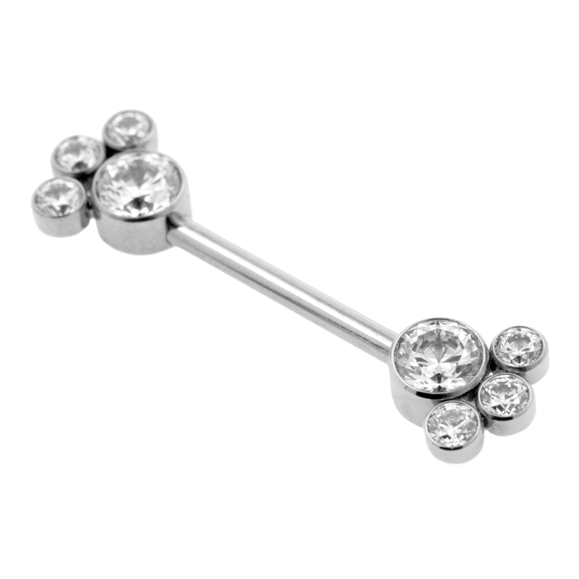 Titanium Tepel Barbell Met Zirkonia Cluster Zilver