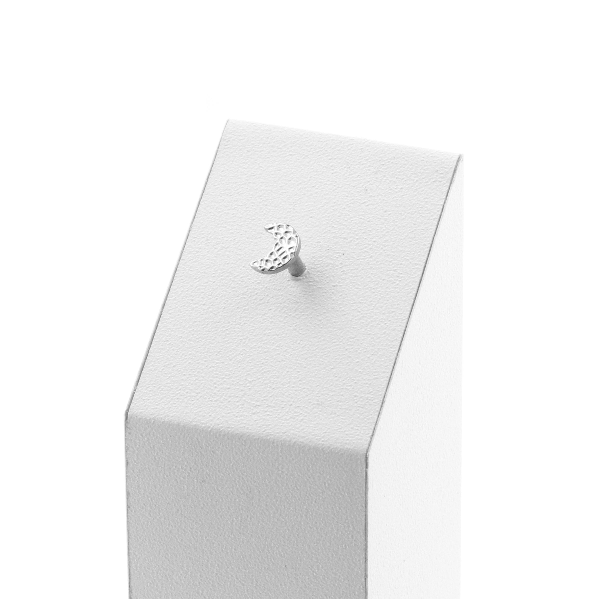 Titanium Textuur Moon Zilver geeft je piercing direct een stijlvolle uitstraling. Deze Threadless Top is vervaardigd uit Titanium. Dankzij het threadless systeem combineer je deze top eenvoudig met al onze staafjes, die wij Threadless Base noemen, voor een perfecte pasvorm en ultiem draagcomfort.