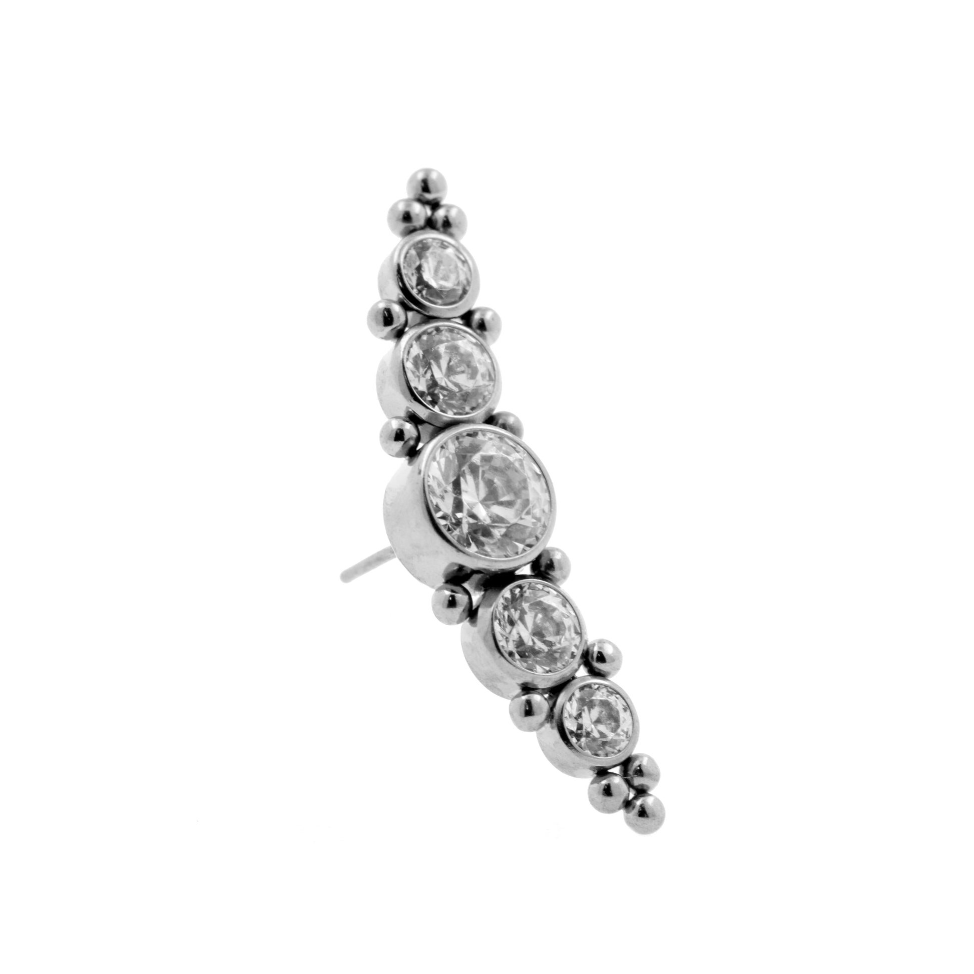 Titanium Zirkonia Cluster - Zilver geeft je piercing direct een stijlvolle uitstraling. Deze Threadless Top is vervaardigd uit Titanium. Dankzij het threadless systeem combineer je deze top eenvoudig met al onze staafjes, die wij Threadless Base noemen, voor een perfecte pasvorm en ultiem draagcomfort.