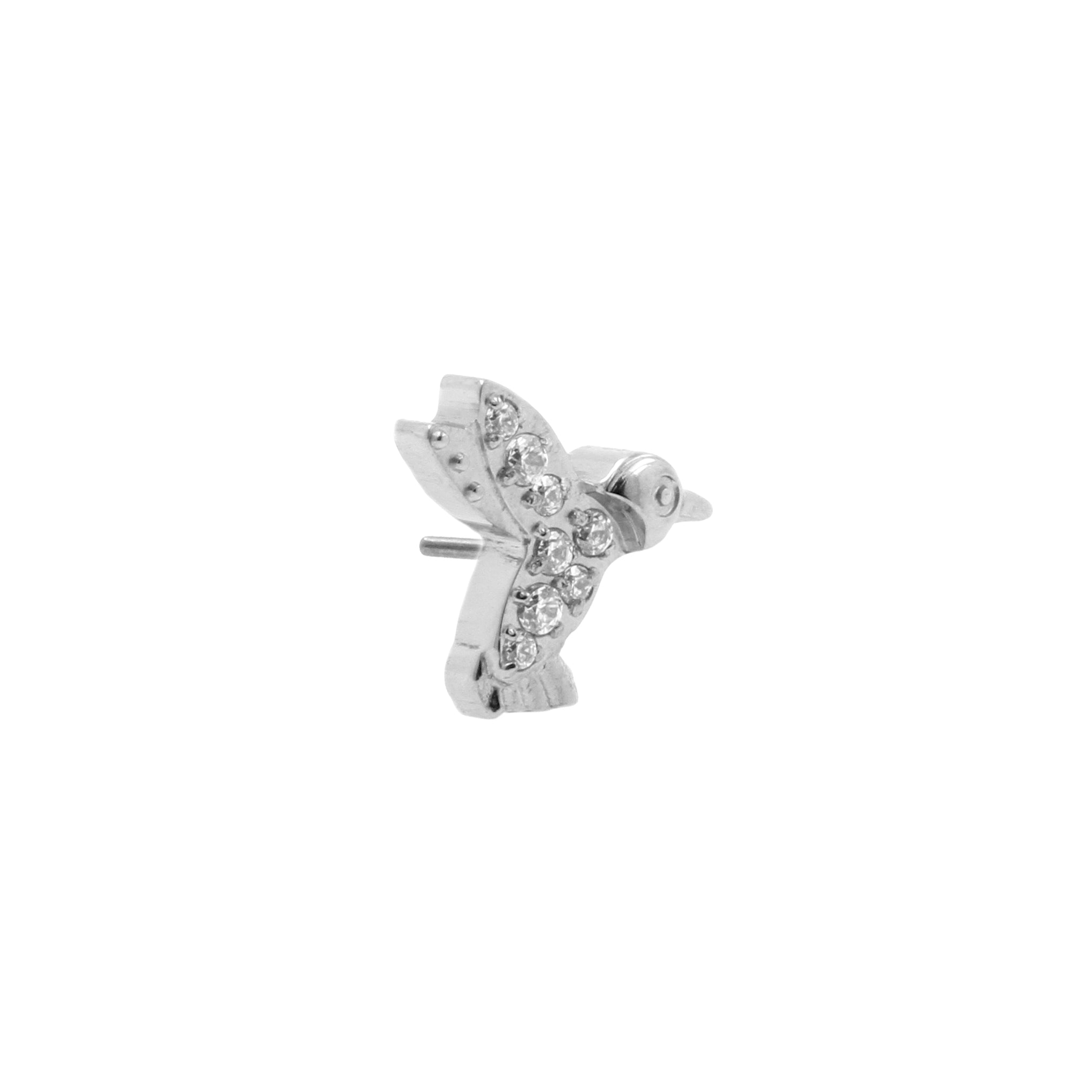 Titanium Zirkonia Hummingbird Zilver geeft je piercing direct een stijlvolle uitstraling. Deze Threadless Top is vervaardigd uit Titanium. Dankzij het threadless systeem combineer je deze top eenvoudig met al onze staafjes, die wij Threadless Base noemen, voor een perfecte pasvorm en ultiem draagcomfort.