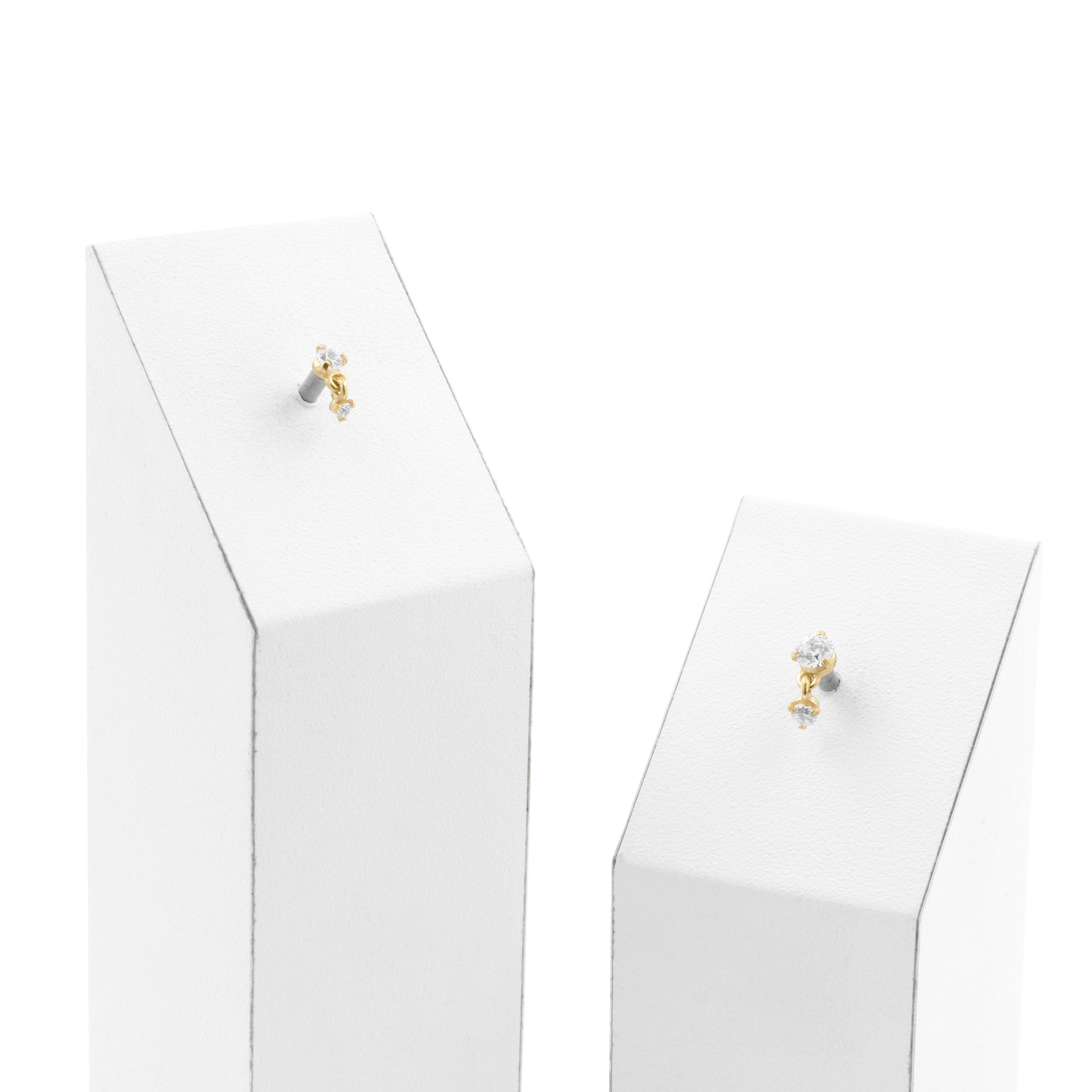 Elegante, subtiel bewegende glans — deze Threadless Top combineert twee zirkonia’s in een verfijnd design waarbij de kleine steen sierlijk bungelt onder de grotere. Verkrijgbaar in drie maten, zodat je precies de schittering kiest die bij jou past. Gemaakt van titanium met een 18 karaats P.V.D. goudcoating. De gouden tint sluit kleurvast aan bij onze collectie gouden sieraden en de coating is slijtvast en waterbestendig — ideaal voor dagelijks dragen.